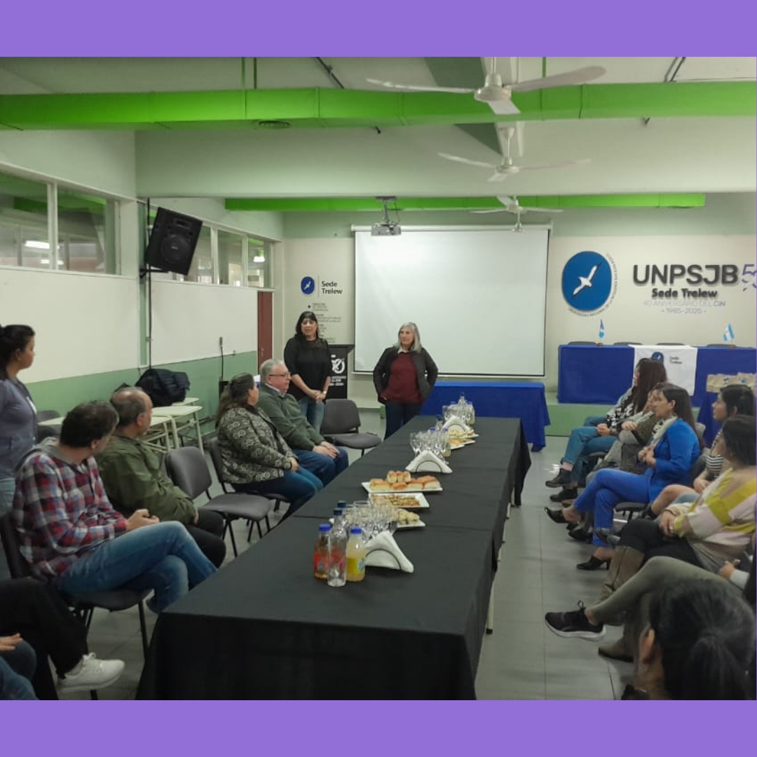 Posteriormente se realizó un encuentro para celebrar la culminación de la cohorte con un ágape que contó también con la presencia del Delegado Zonal de la sede Trelew, el Lic. Marcos Esteban Kupczewski, quien expresó la importancia de que la propuesta formativa pueda brindarse en la sede y acompañó a los presentes por los logros obtenidos y la elección de la formación docente en articulación con sus propias disciplinas.