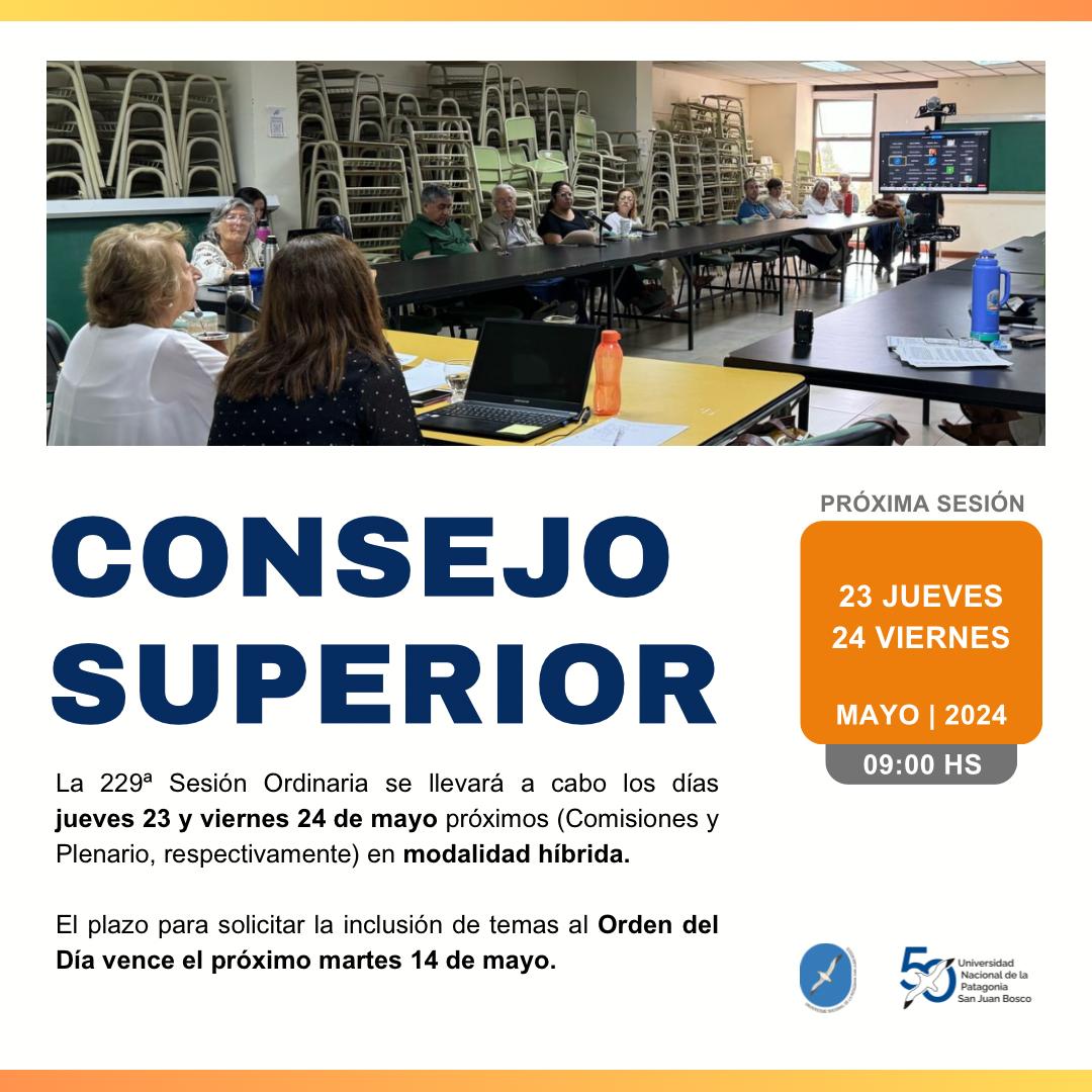Comunicado sobre la 229ª Sesión Ordinaria del Consejo Superior Publicado el Miércoles, 08 Mayo 2024 15:55 Categoría: Sesiones Visitas: 1960