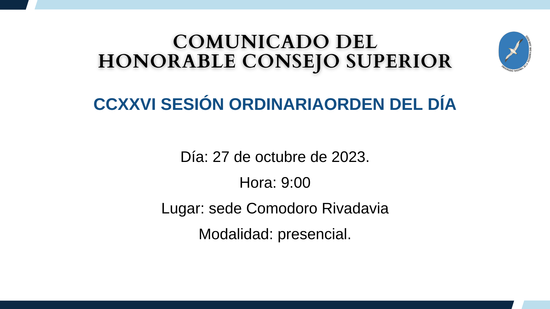 Orden del día CCXXVII Sesión Ordinaria del H. Consejo Superior Publicado el Jueves, 14 Diciembre 2023 16:28 Categoría: Sesiones Visitas: 2447