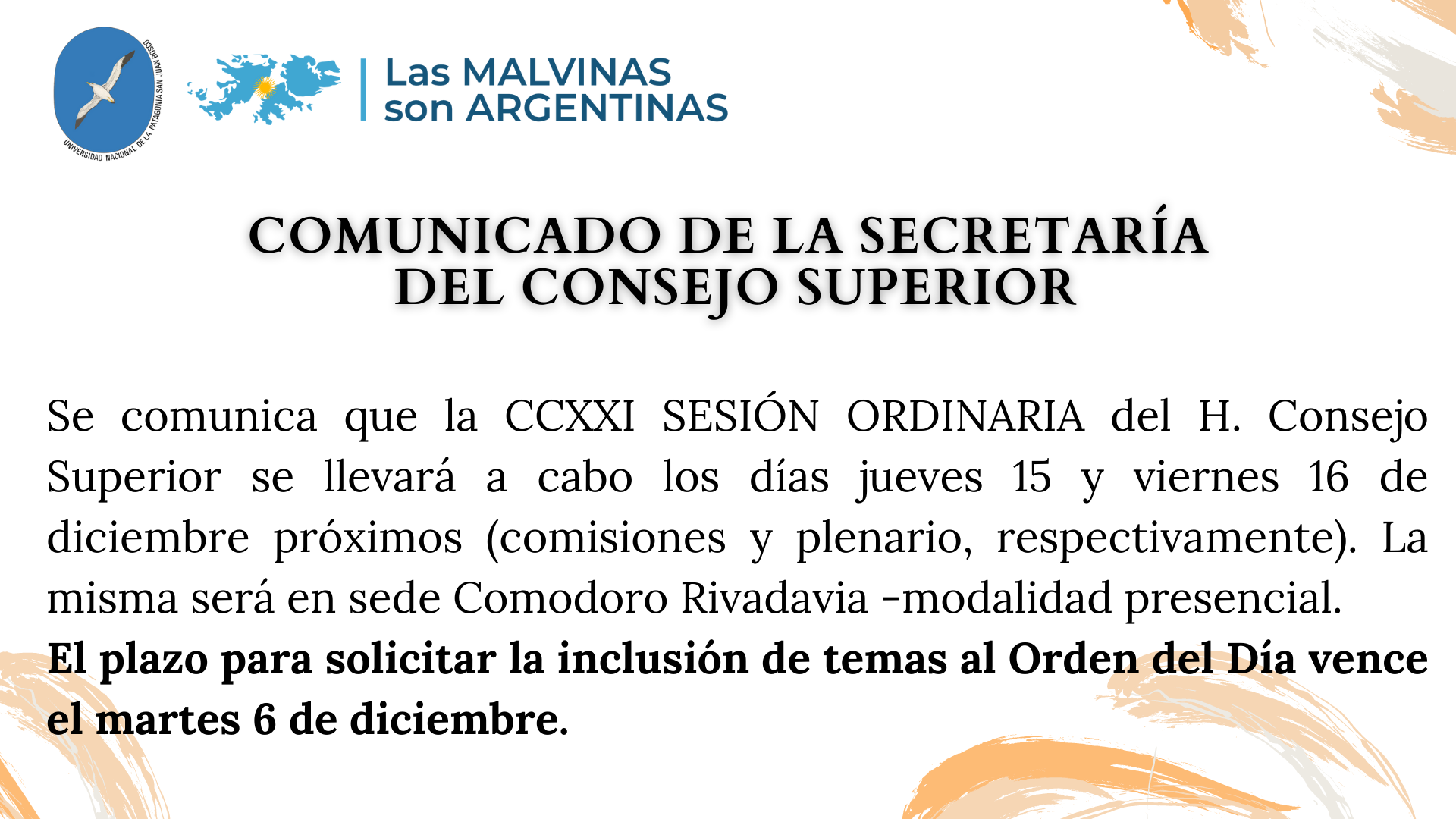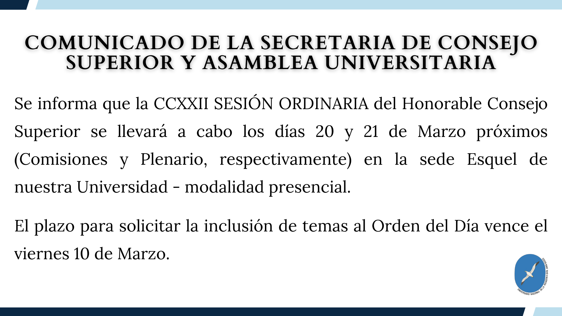 CCXXI Sesión Ordinaria del Consejo Superior- Orden del Día