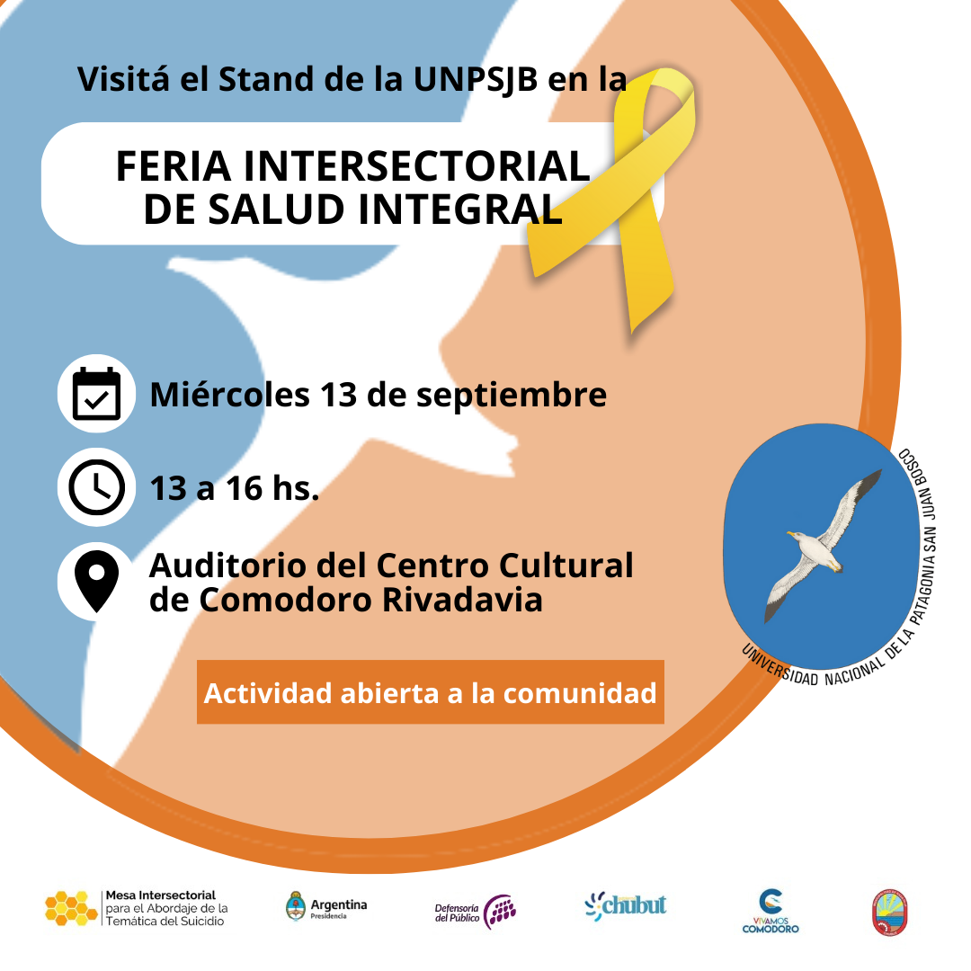 La UNPSJB invita a toda la comunidad a visitar su stand en la Feria Intersectorial de Salud Integral, que se desarrollará el día miércoles 13 de septiembre, de 13 a 16 hs.