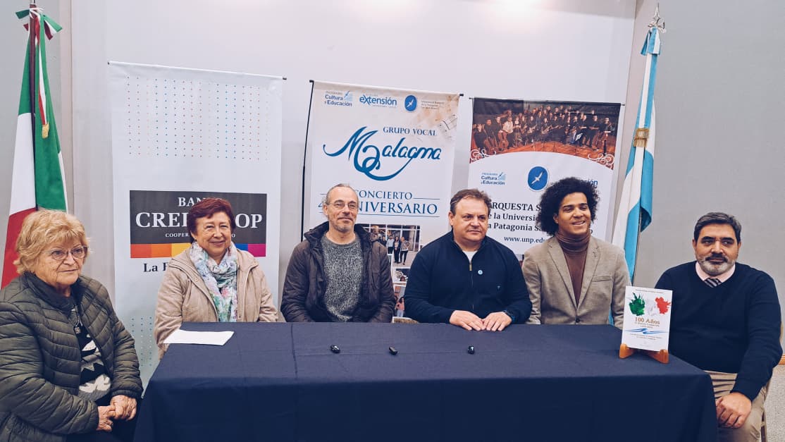En la conferencia de prensa estuvieron presentes el Secretario de Extensión de la UNPSJB, Diego Lazzarone, la Secretaria de Cultura, Mgtr. Susana González, la directora del flamante elenco vocal que presidirá la velada, Norma Pombo, autoridades del Banco Credicoop, el director de la Orquesta Sinfónica de la UNPSJB Mtro. Luis Miguel Acosta y el Mtro. invitado Federico Ciancio.