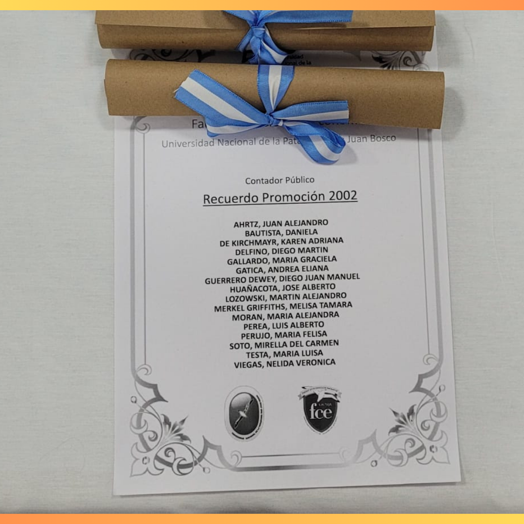 A partir del año 2010 las autoridades de la Facultad de Ciencias Económicas han decidido homenajear a las distintas promociones de graduados. El 10 de junio recibieron un presente recordatorio de manos del decano de la FCE quienes integran de las promociones 2002 y 2003.