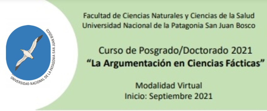 Curso de Posgrado/Doctorado: La Argumentación en Ciencias Fácticas. La Universidad Nacional de la Patagonia San Juan Bosco, a través de la Facultad de Ciencias Naturales y Ciencias de la Salud, anuncia que el próximo 17 de septiembre, comenzará a desarrollarse el Curso de Posgrado/ Doctorado 2021, "La Argumentación en Ciencias Fácticas".