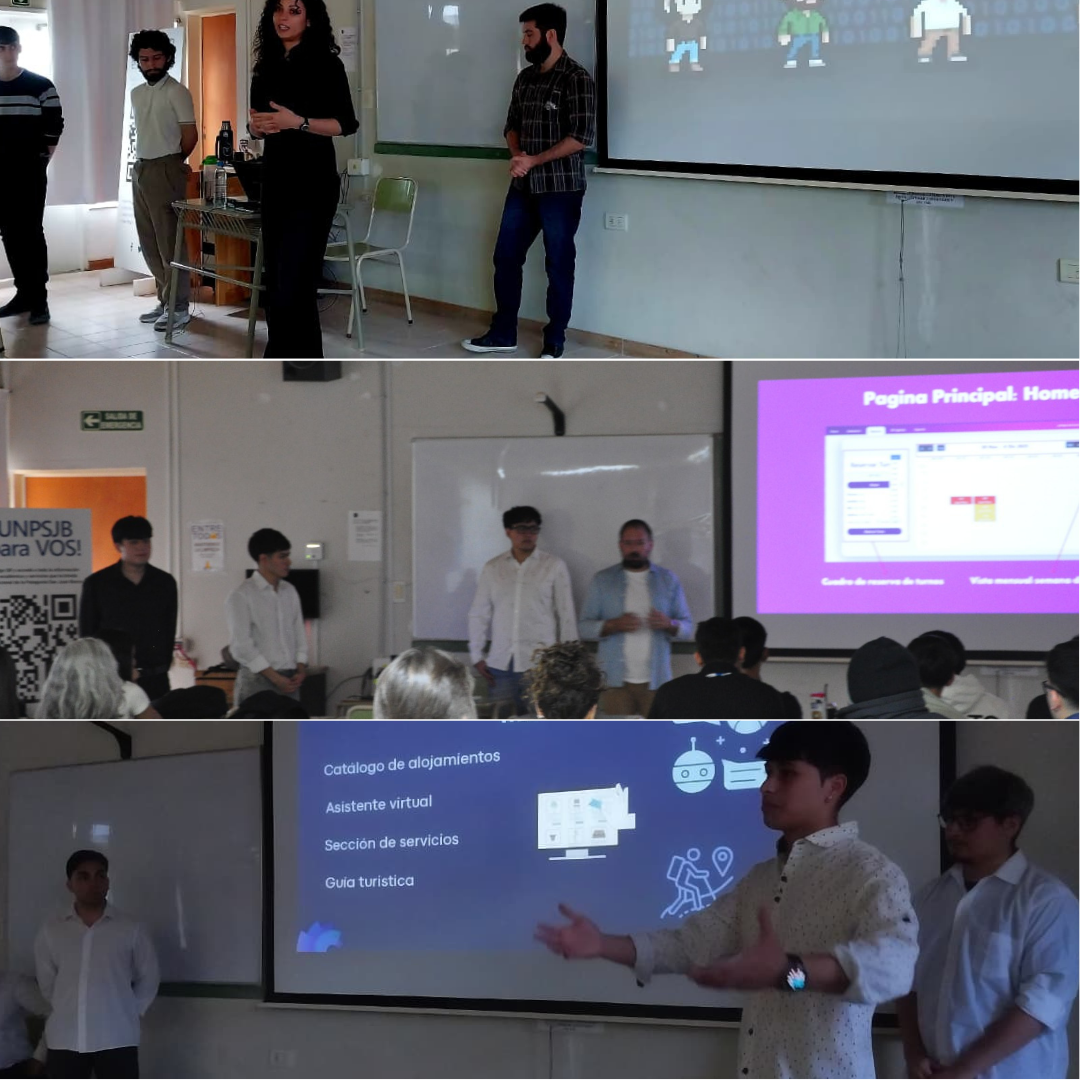 En el aula magna de la Sede Esquel se brindaron las referencias de cada uno de los casos, donde los estudiantes explicaron las ideas, el trabajo en equipo y las ventajas que cada una representa.