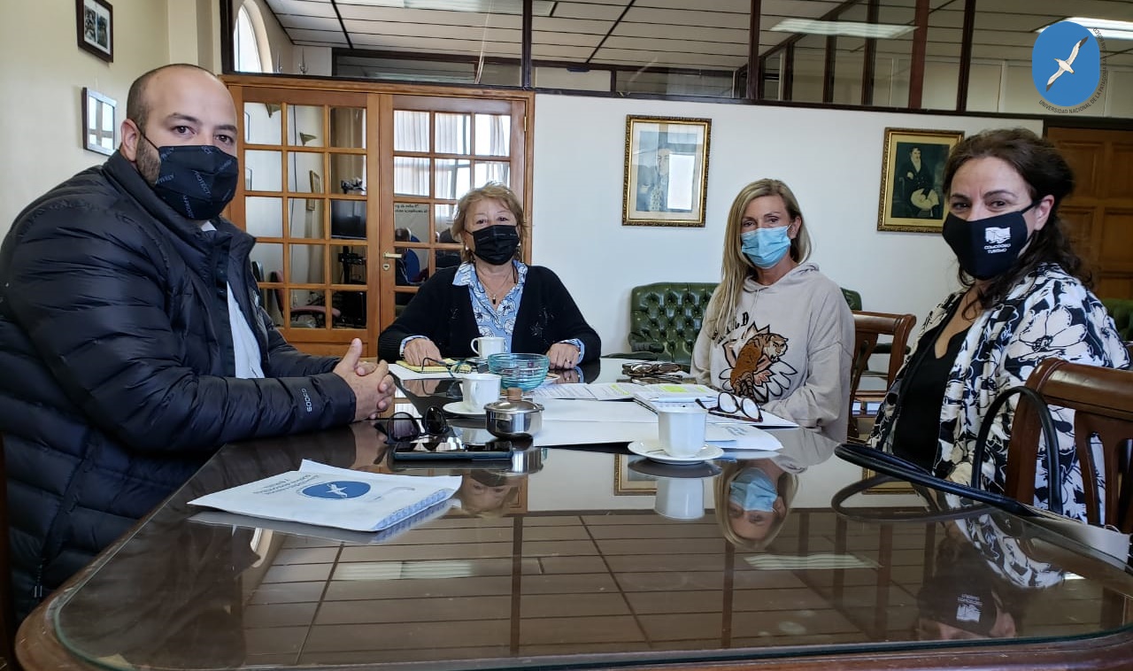 La Rectora de la UNPSJB, Lidia Blanco, junto a la Secretaria de Ciencia y Técnica, Mónica Freile, recibieron a representantes del Ente Comodoro Turismo, entre quienes se encuentra Gabriela Zuñeda.