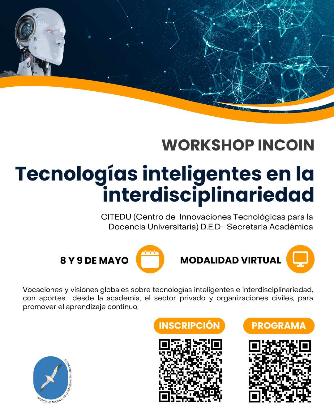 La Universidad Nacional de la Patagonia San Juan Bosco, a través de su Secretaría Académica y la Dirección de Educación a Distancia (CITEDU), invita a toda la comunidad a participar en las Jornadas Abiertas sobre Tecnologías Inteligentes en la Interdisciplinariedad, que se desarrollarán de manera virtual los días jueves 8 y viernes 9 de mayo de 2025.
