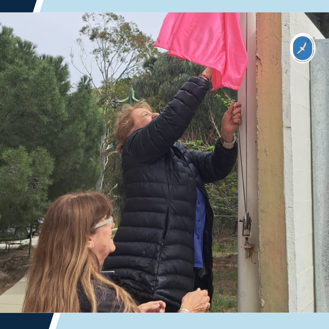 Hoy viernes 20 de octubre, la rectora de la UNPSJB, Lidia Blanco y Nancy Regina, referente de Aquarium izaron la bandera que simboliza la importancia de la prevención para prevenir este tipo de cáncer. Acompañaron está actividad funcionarias de las distintas unidades académicas, docentes y personal no docente.