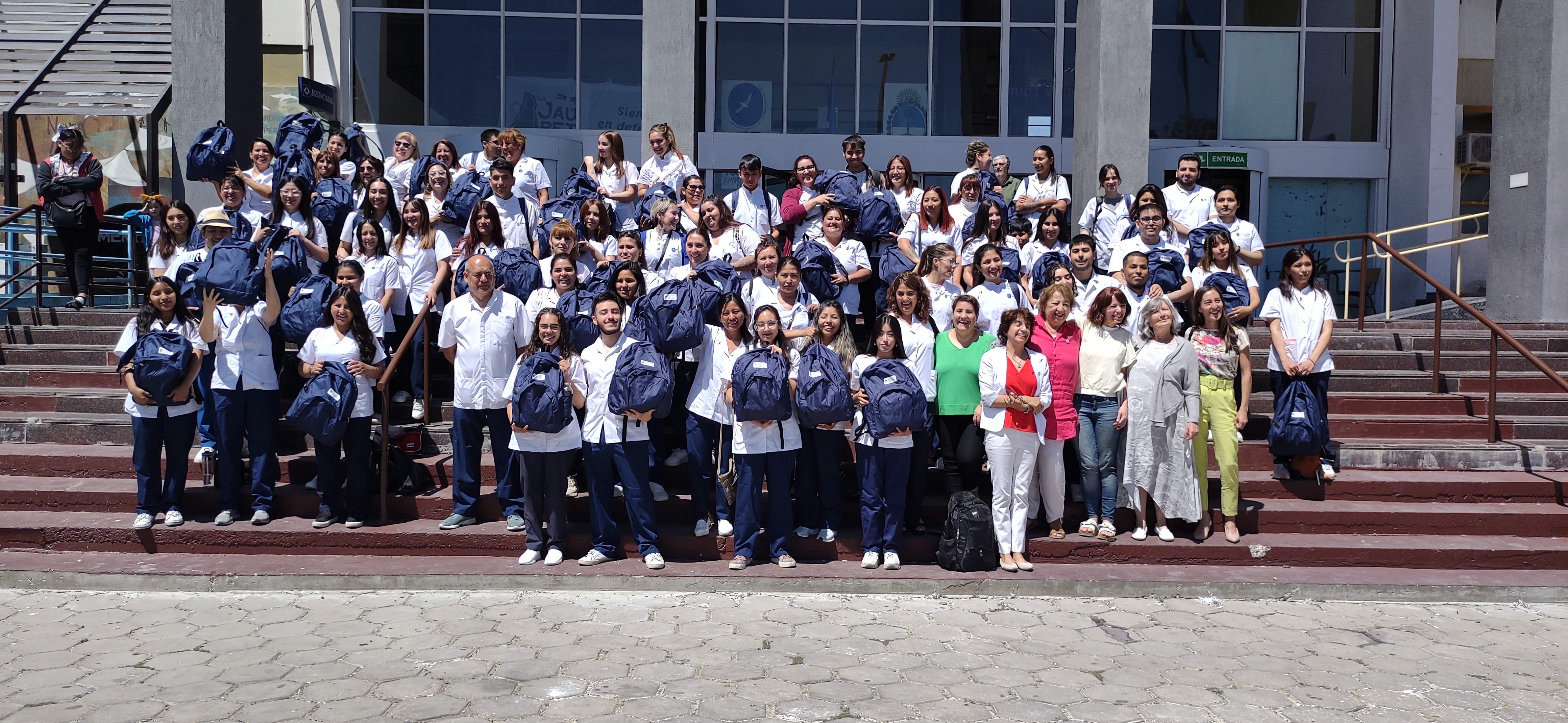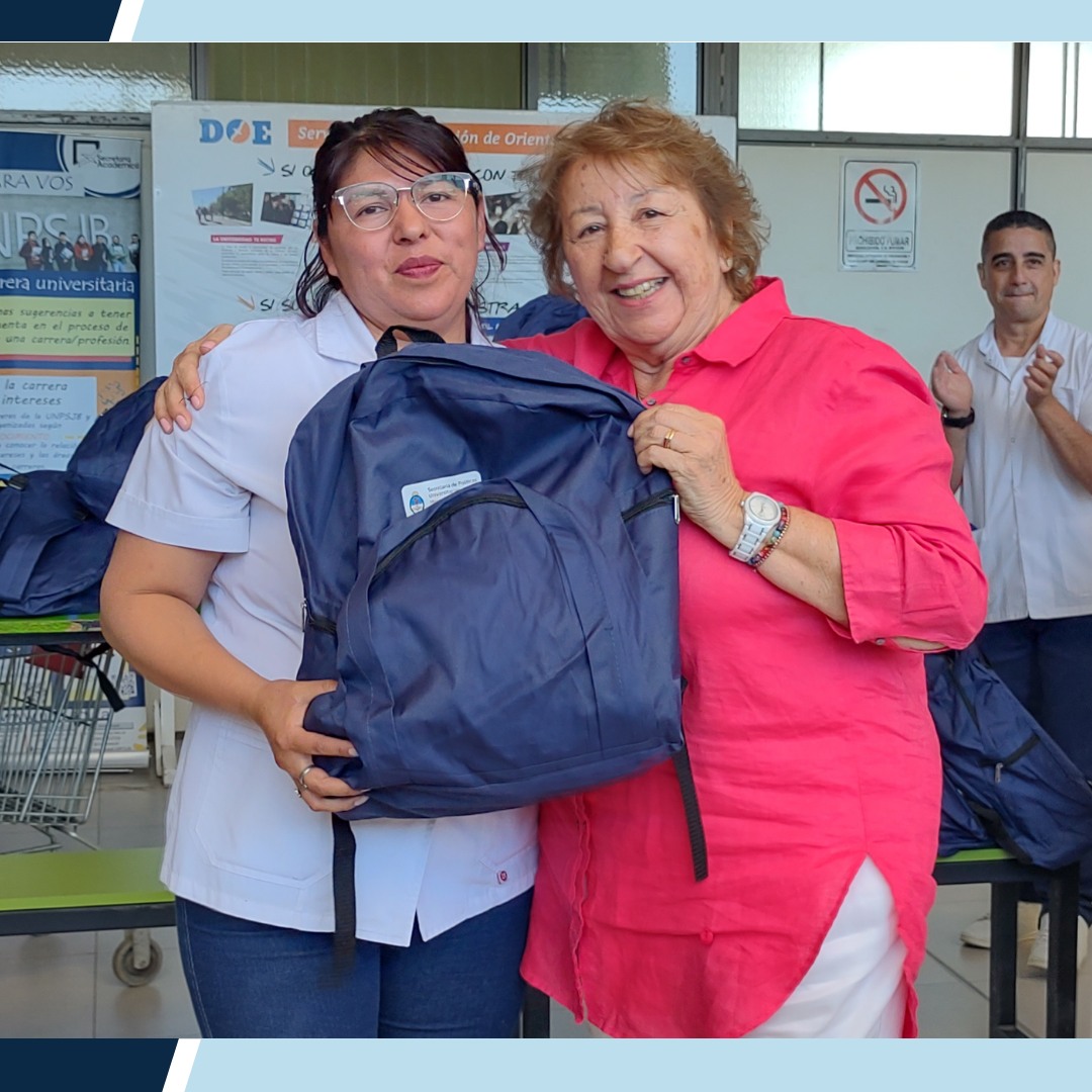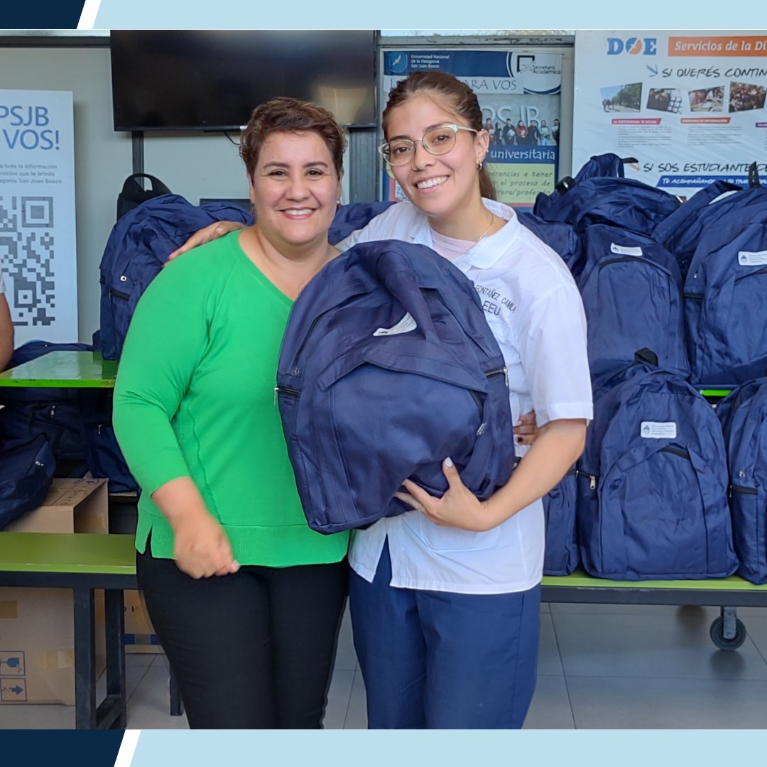 El jueves 21 de diciembre de 2023, la Universidad Nacional de la Patagonia San Juan Bosco, realizó la entrega de 85 mochilas otorgadas por la Secretaría de Políticas Universitarias, a estudiantes de segundo año de la carrera Licenciatura en Enfermería de la Facultad de Ciencias Naturales y Ciencias de la Salud.