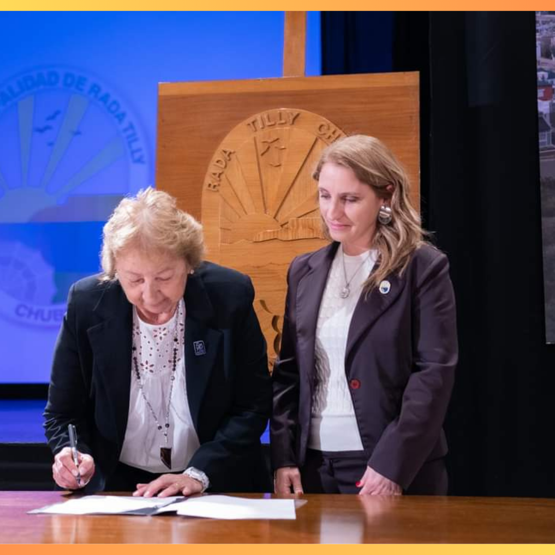 La rectora de la UNPSJB, Mag. Lidia Blanco firmó el convenio de cooperación con la intendenta de la Municipalidad de Rada Tilly, Mariel Peralta, en el marco del acto para conmemorar el 76 aniversario de fundación de la villa. El acto se realizó en la mañana del miércoles en el Centro Cultural.