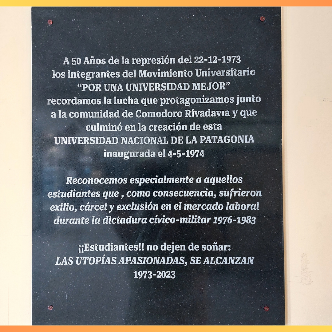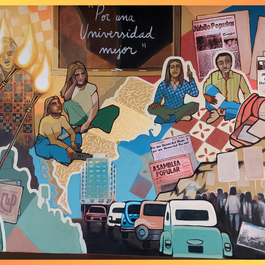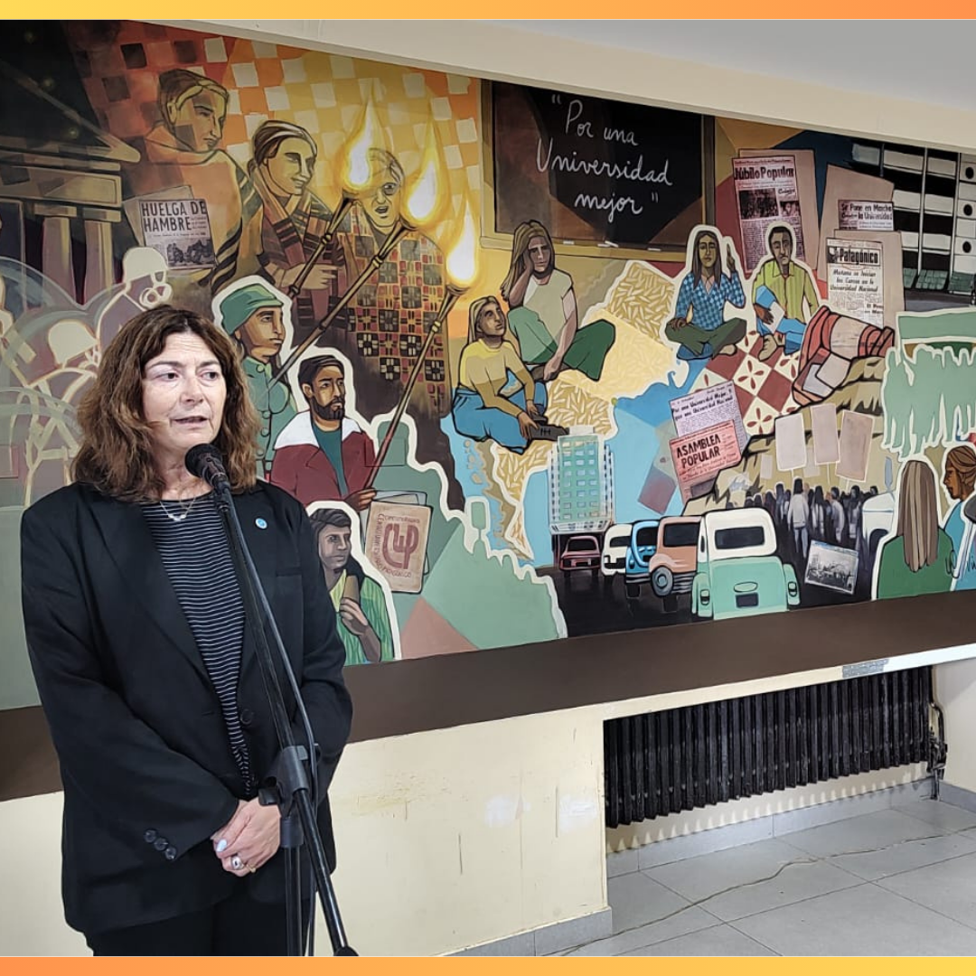 El mural se encuentra ubicado en el hall de ingreso de la sede Comodoro Rivadavia "Daniel Luz Clara" -uno de los referentes del movimiento estudiantil-. Este mural es el resultado de un proyecto institucional de la Delegación Zonal de Comodoro Rivadavia y refleja el apoyo de toda nuestra comunidad.
