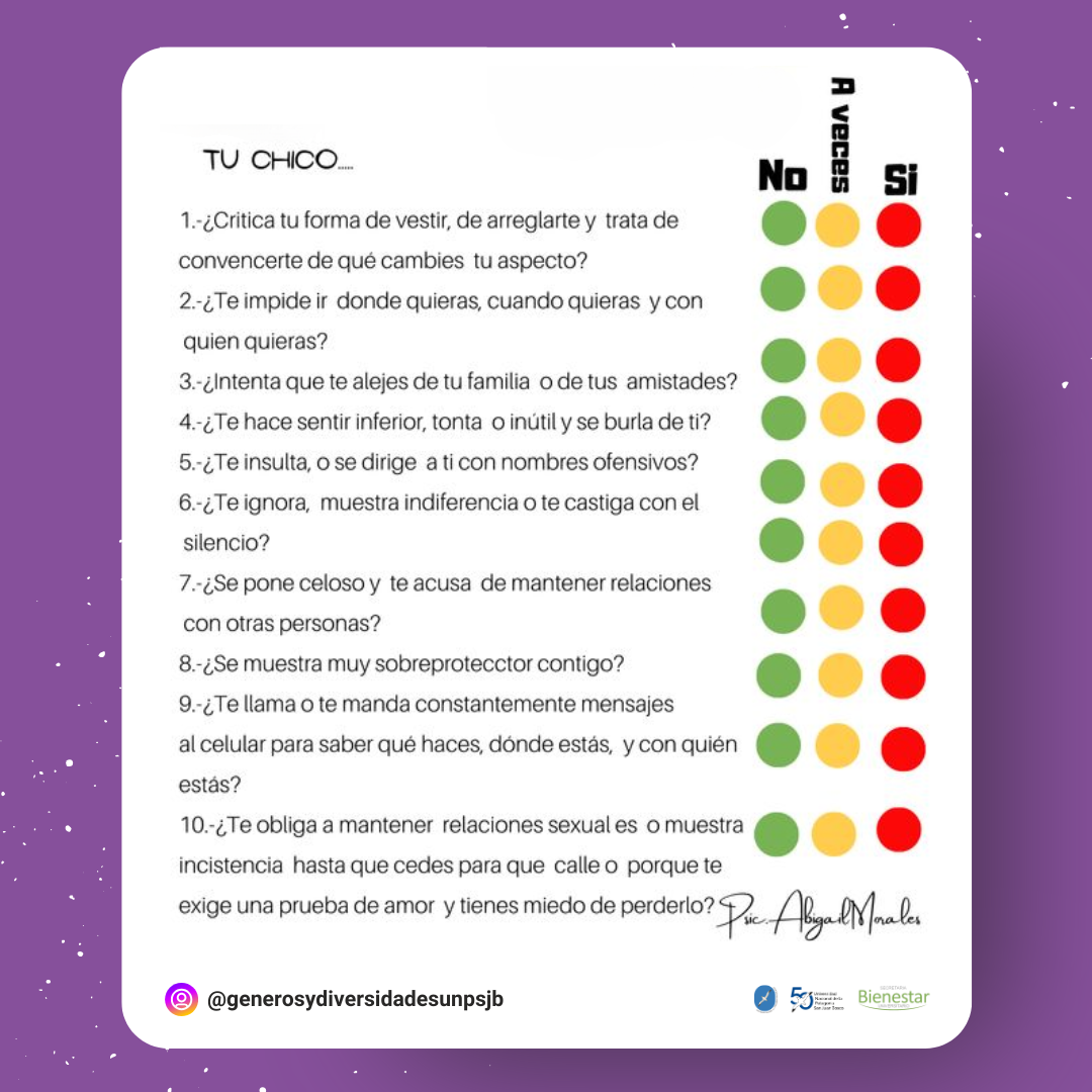 Esta imagen corresponde a un “test de violencia de género” diseñado para ayudar a las personas a identificar signos de abuso en sus relaciones.