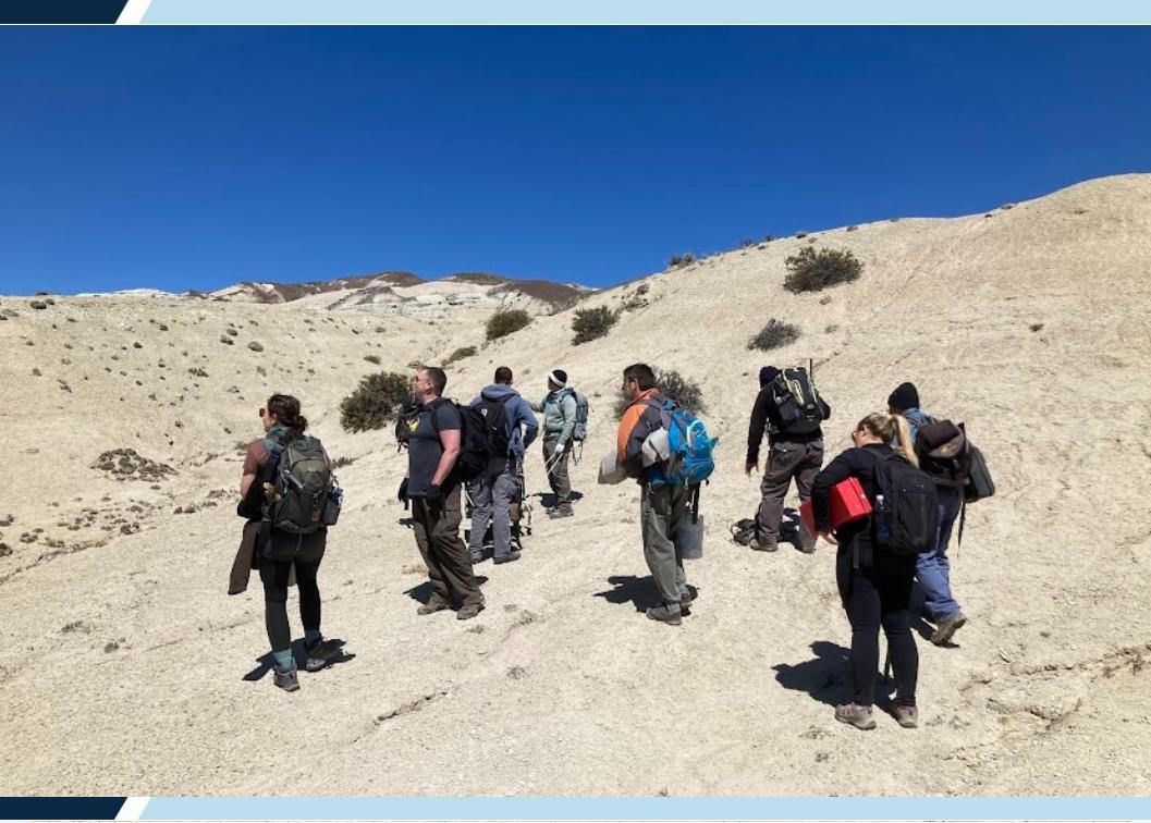 Para el traslado del equipo de investigación y de los materiales de trabajo se requirieron tres vehículos que salieron de la sede universitaria Comodoro Rivadavia, liderados por el Dr. Gabriel Casal de la UNPSJB y el Dr. Matthew Lamanna del Museo Carnegie, junto al Dr. Lucio Ibiricu del CENPAT, el Geól. Bruno Alvarez, el Geol. Sebastián Bueti; la Geol. Noelia Cardozo, todos tesistas de doctorado de la universidad patagónica, Ivana Mora, Julieta Caglianone, ambas estudiantes de Geología y Biología, Edmundo Ivany, Ezequiel Baltuska voluntario de Turismo de la Municipalidad de Sarmiento, y colaboradoras del museo estadounidense Kara Fikse, Linsly Church y Derek Fikse.