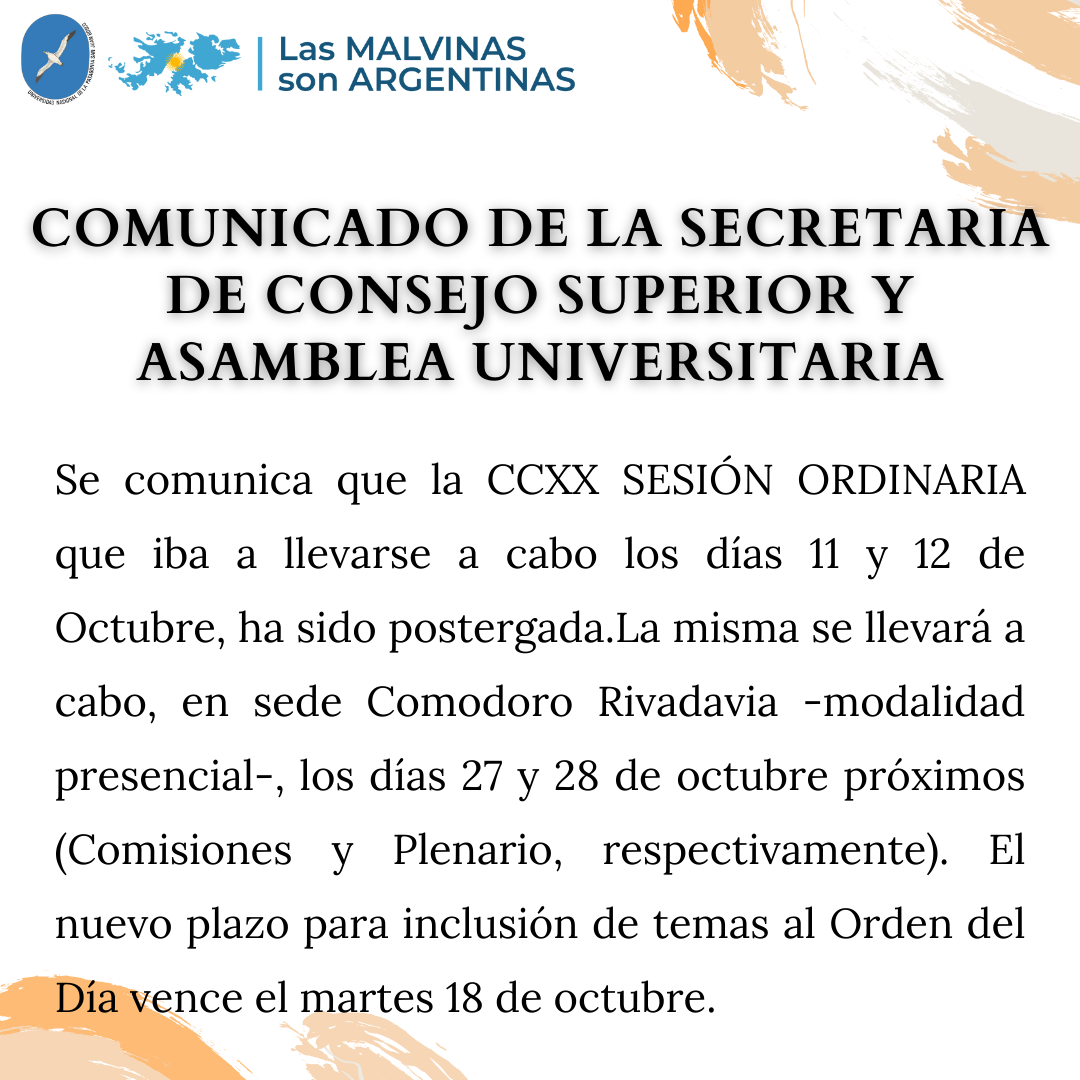 El acto electoral para elegir representantes del claustro alumnos en los cuerpos colegiados de la UNPSJB será el 19 de octubre de 2022.
