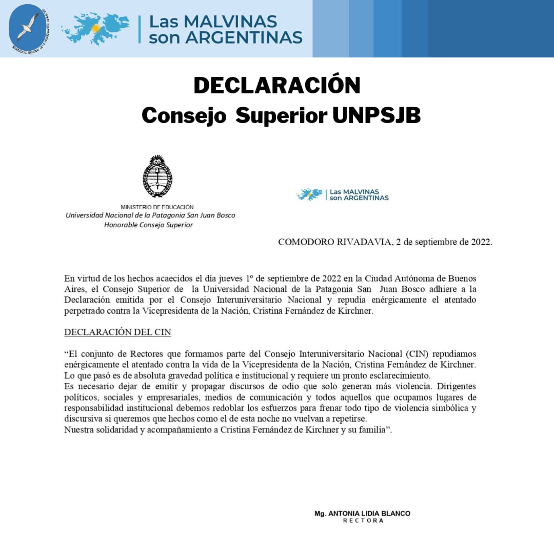 Las Primeras Jornadas de Ciencia y Técnica 2022 de la Universidad Nacional de la Patagonia San Juan Bosco (UNPSJB) se realizarán el próximo 8 y 9 de septiembre, bajo el lema "Reconociéndonos y vinculándonos a través de la Ciencia, la Investigación y la Tecnología: desde la Universidad a la comunidad".