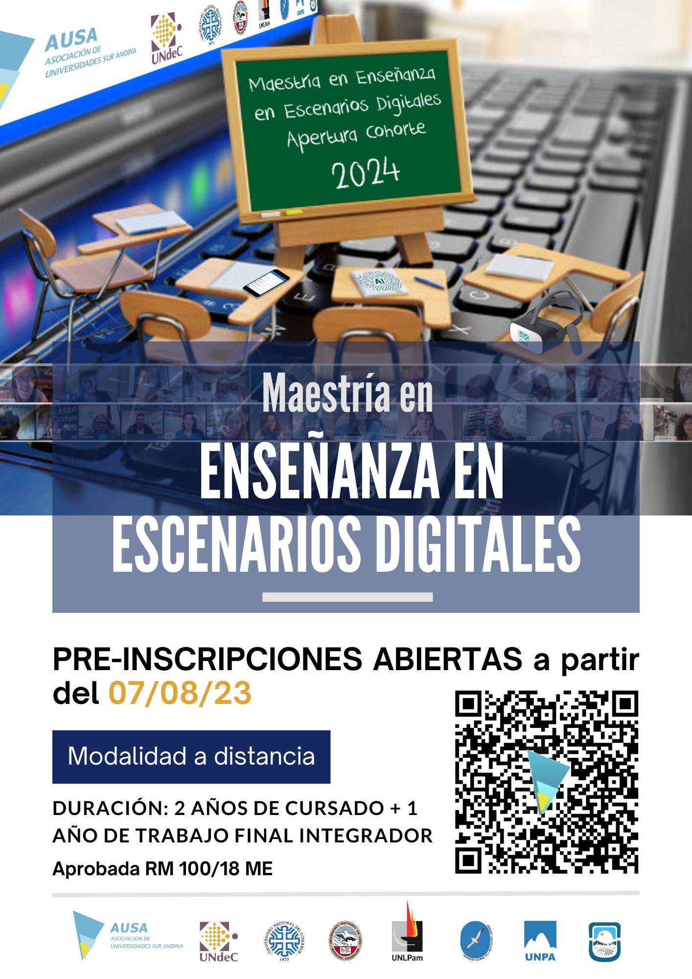 MAESTRIA EN ENSEÑANZA EN ESCENARIOS DIGITALES Inicio de la 4ta cohorte 2024 - PREINSCRIPCIONES EN AGOSTO