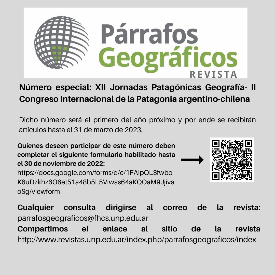 Publicación de trabajos completos en revista Párrafos Geográficos del IGEOPAT. Normas para la presentación: Click aquí