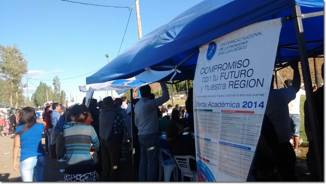 En el marco del Programa Comunidades en Red, la Universidad Nacional de la Patagonia San Juan Bosco presentó su Oferta Académica 2016 y los distintos servicios que ofrece al estudiante, en las Fiestas Nacionales que se celebran durante el mes de febrero en la Provincia del Chubut.