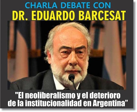 Con la organización de la Facultad de Ciencias Jurídicas de la Sede Universiaria Esquel y el Instituto Futaleufú, este miércoles 28 de Marzo, a las 18 horas en el Aula Magna, el Dr Eduardo Barcesat dictará una charla debate acerca de la situación de institucionalidad actual en la República Argentina.