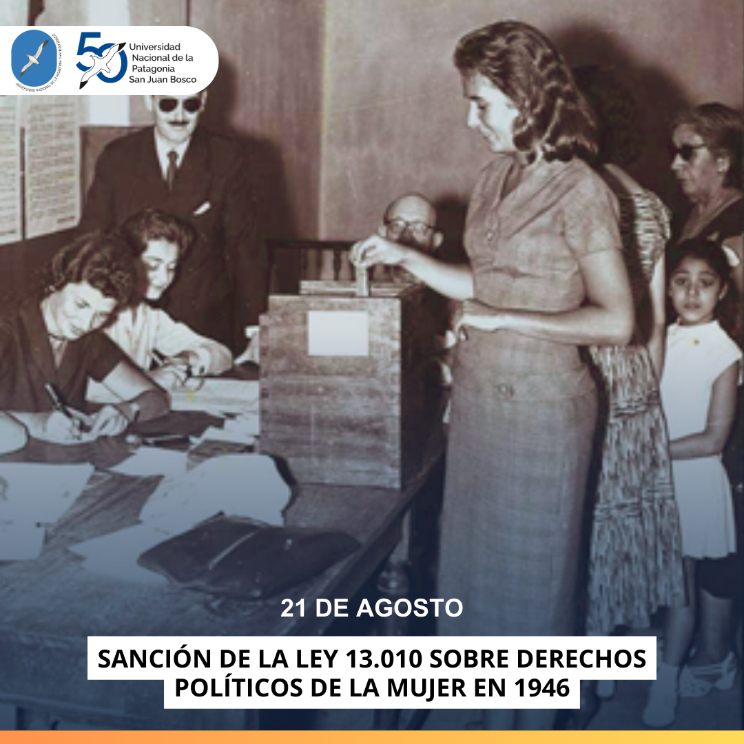 Sanción de la Ley 13.010 sobre Derechos Políticos de la Mujer Escrito en 19 Agosto 2024. | Publicado en Efemérides Leer más
