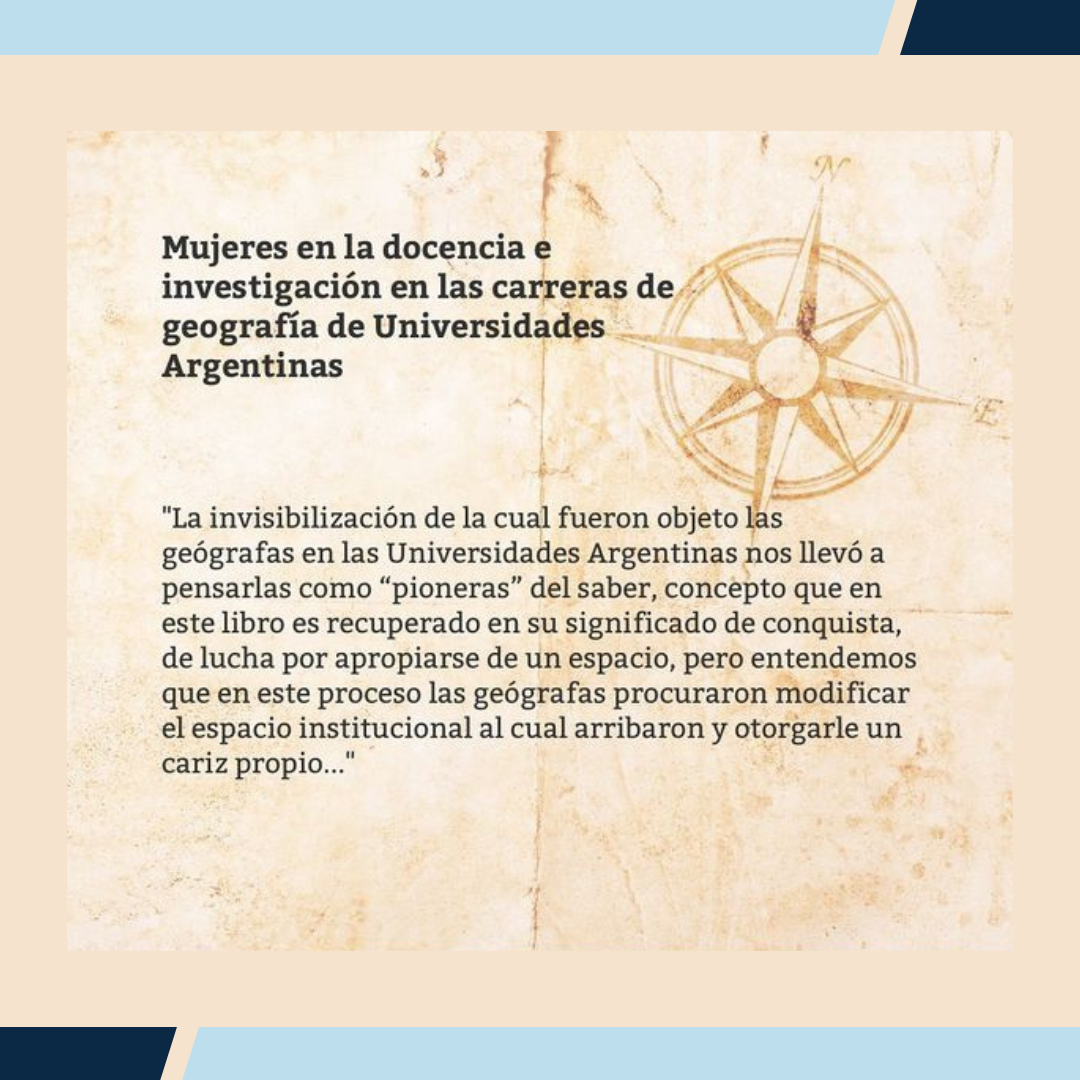 En el marco del Día Internacional de la Mujer, docentes e investigadoras de geografía anunciaron la publicación de "Pioneras de la Geografía. Mujeres en la docencia e investigación en las carreras de Geografía de las Universidades Argentinas". Se trata de un libro que busca visibilizar el trabajo de importantes educadoras e investigadoras de la Geografía argentina quienes, a lo largo del tiempo, lograron construir un lugar propio en espacios generalmente ocupados por varones, contribuyendo al desarrollo de nuestra disciplina.