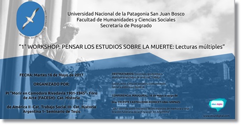 Este Workshop se sustenta en la premisa de Philippe Aries “En nuestra cultura occidental la muerte ha experimentado cambios y modificaciones en la manera de ser concebida y vista.” (Aries. 1982:94), es decir no se tiene la misma idea de muerte en la antigüedad que en el presente. Ello posibilita la construcción de un recorrido histórico pero también sociológico, antropológico, estético, cultural etc., sobre el tema que nos convoca.