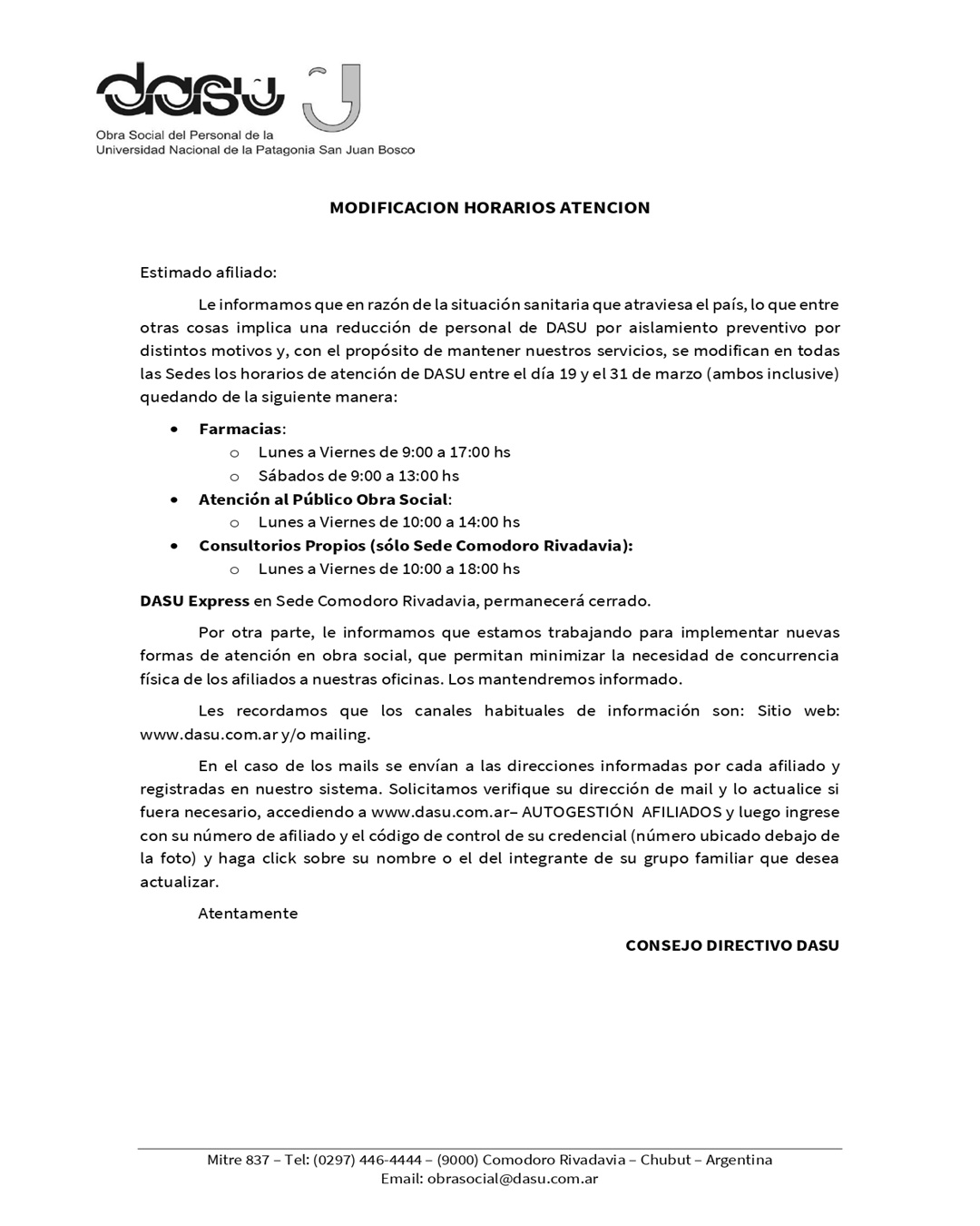 DASU informa la modificación de los horarios de atención Escrito en 19 Marzo 2020. | Publicado en Coronavirus Sportswear Design | Nike Compartir este artículo Etiquetas: Docentes NODOCENTE