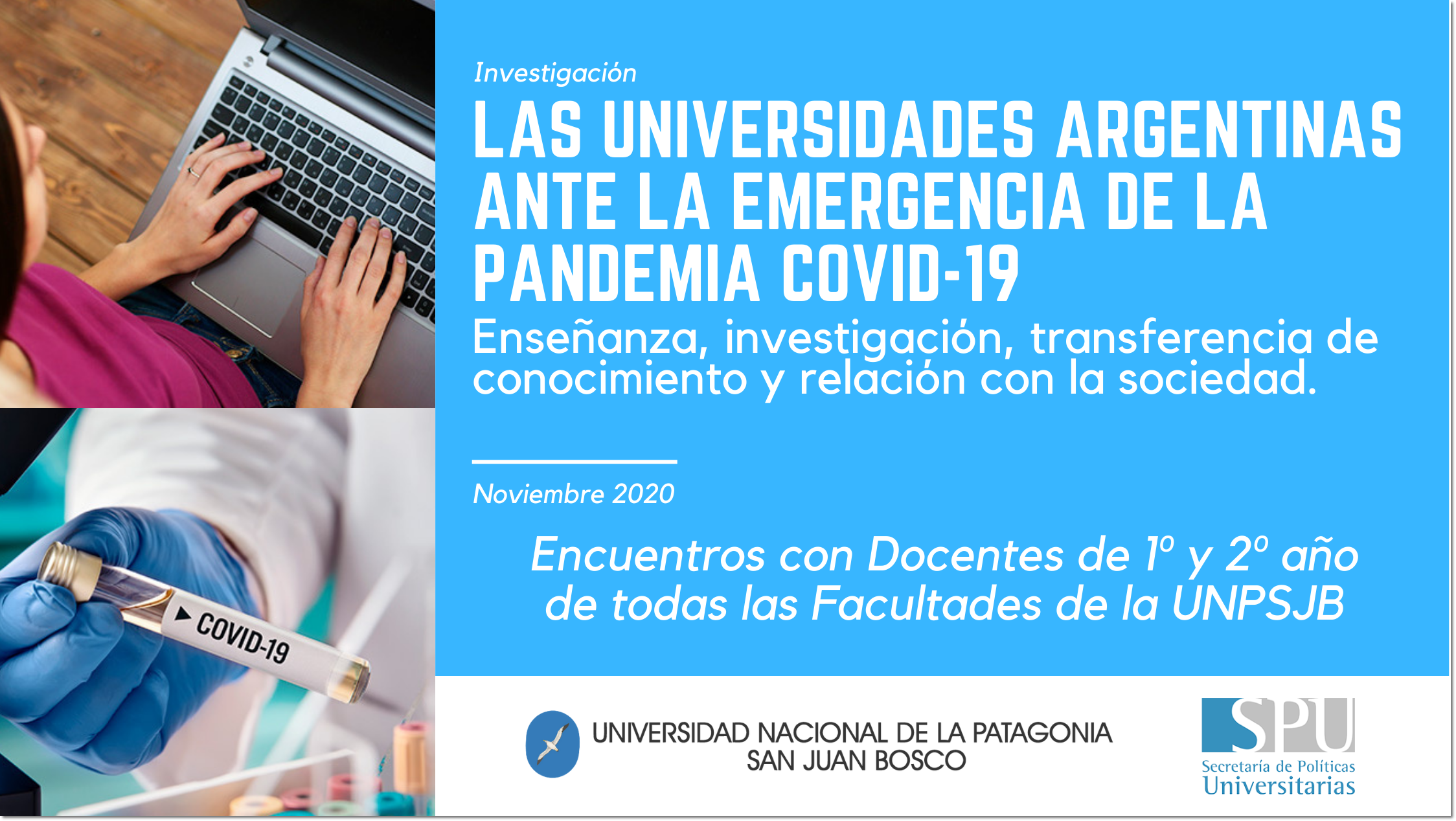 El Sr. Rector de la UNPSJB Dr. Carlos De Marziani invita a la comunidad universitaria a responder las encuestas sobre la problemática del Covid-19 y el impacto en la Universidad. La UNPSJB viene trabajando desde el inicio de la pandemia en el reconocimiento de las situaciones, dificultades y circunstancias que implica mantener la continuidad pedagógica, científica tecnológica, de extensión demás actividades afines en el marco de esta difícil situación.