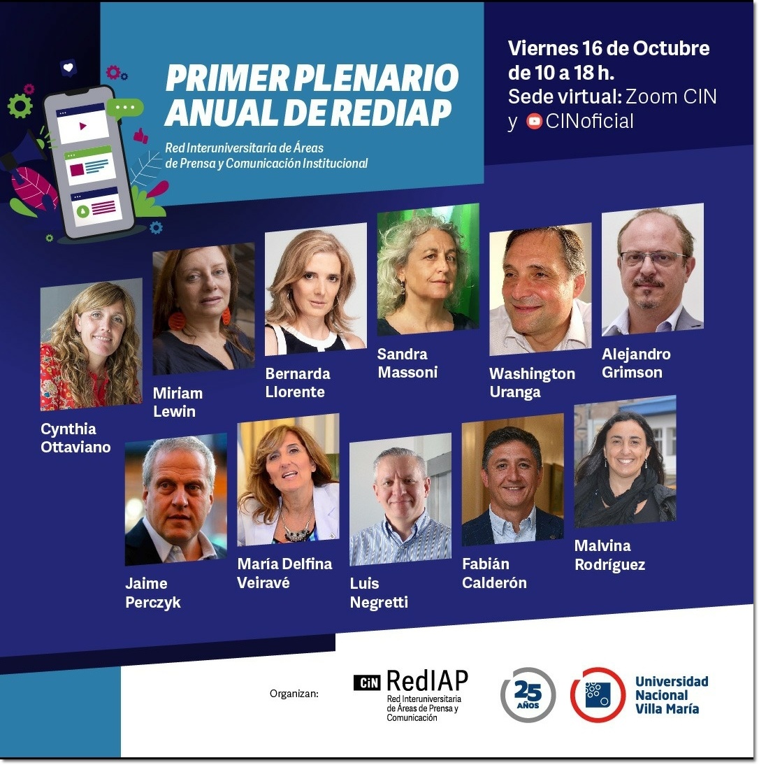 La UNPSJB y laRed Universitaria de Áreas de Prensa y Comunicación Institucional, (REDIAP) invitan al Plenario Anual, el viernes 16 de octubre en el horario de 10 a 18, con conferencias, espacios de formación, conversatorios y talleres.