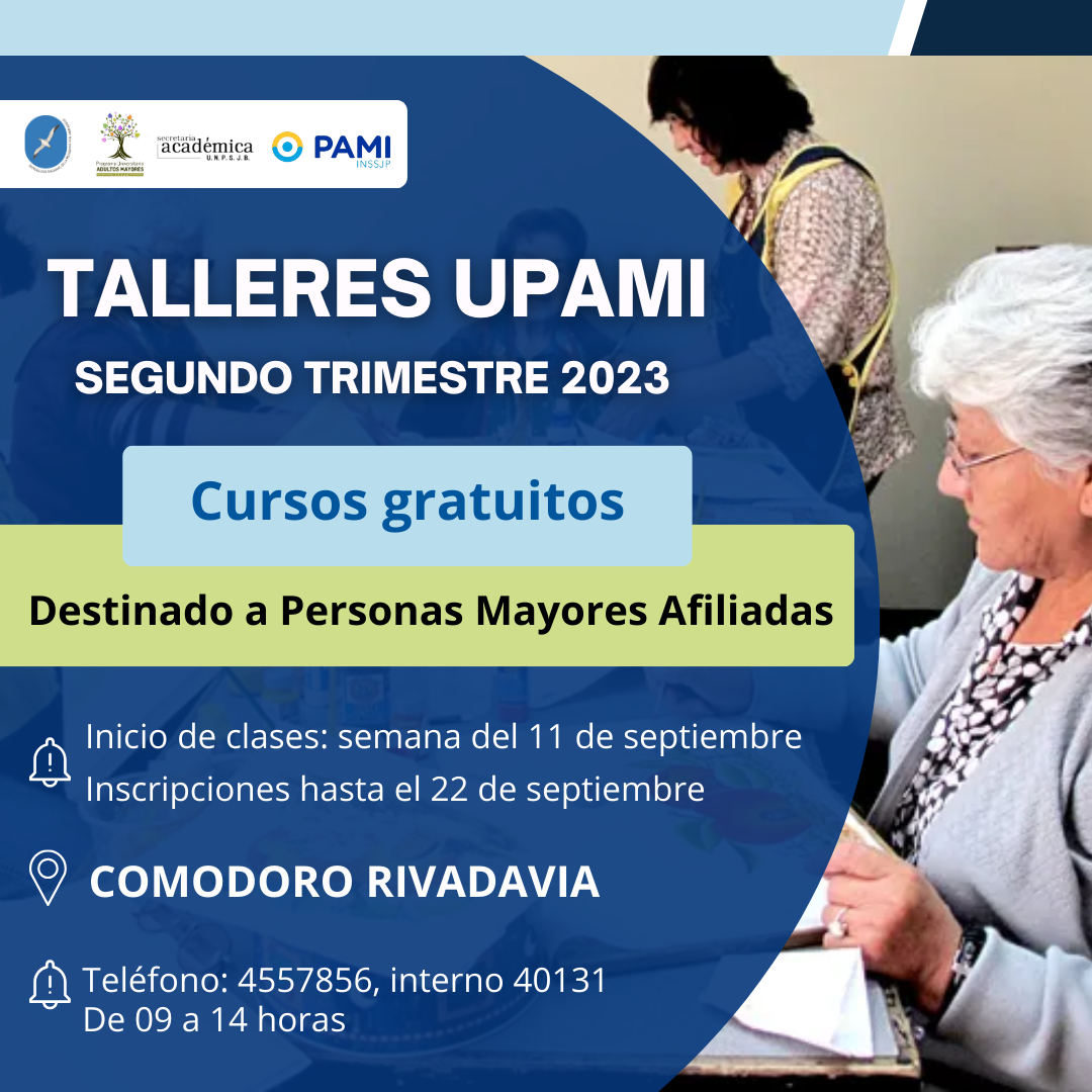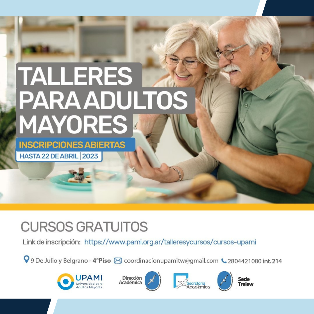 La Universidad Nacional de la Patagonia San Juan Bosco, desde la Secretaria Académica del Rectorado, por medio del Programa Universitario de Adultos Mayores, y El Instituto Nacional de Servicios Sociales para Jubilados y Pensionados abrieron las inscripciones para los Talleres UPAMI.