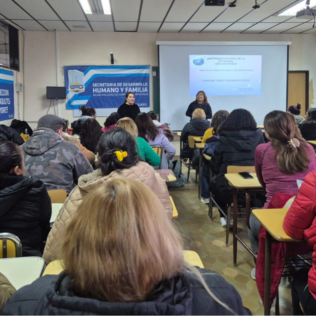 La actividad fue realizada en conjunto con la Dirección de Adultos Mayores, el Departamento de Enfermería de la Facultad de Ciencias Naturales y Ciencias de la Salud, y el Programa de Adultos Mayores, dependientes de la Universidad Nacional de la Patagonia San Juan Bosco.