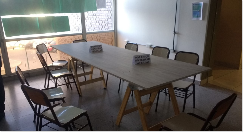 El trabajo está a cargo del personal de Servicios Generales y Mantenimiento quienes acondicionaron las paredes, recuperaron bancos viejos para hacer sillas, armaron las mesas y además colocaron nuevos toma corriente.