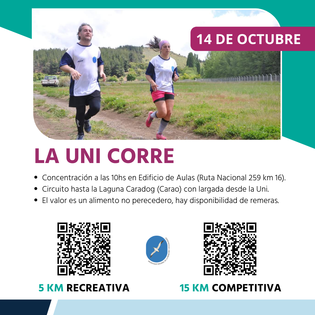 La Sede Esquel será epicentro de "La Uni corre", con dos categorías: 5 Km recreativa y 15 Km competitiva.