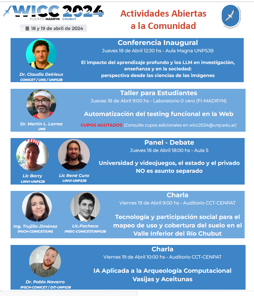 La Facultad Ingeniería de la Universidad Nacional de la Patagonia San Juan Bosco, Sede Puerto Madryn invita a la comunidad en general a participar del WICC 2024.