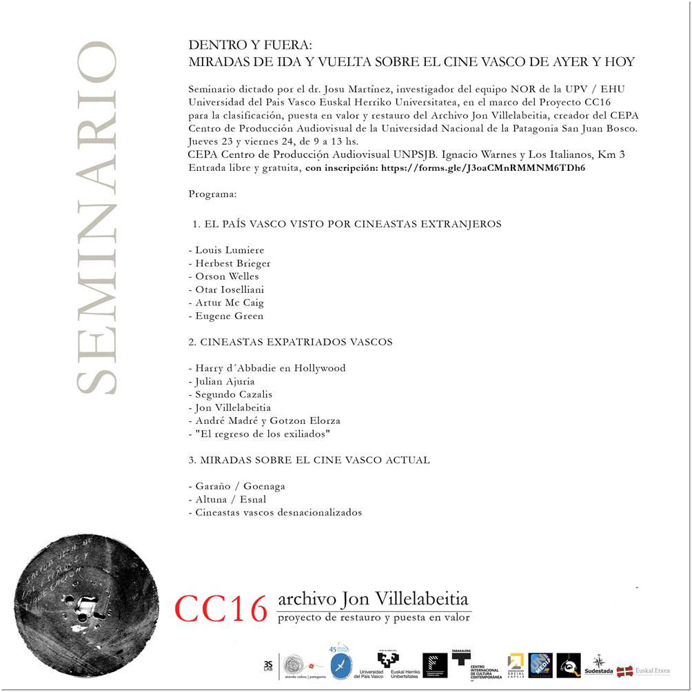 Martínez arribará a Comodoro Rivadavia el día 20 de mayo con una estadía prevista hasta el día 26, durante la cual se dictará un Seminario de dos días de duración, jueves 23 y viernes 24, en el horario de 9 a 13 hs., en las Aulas del CEPA (Km. 3). El mismo abordará el tema de la diáspora del cine vasco, presentando distintos cineastas, entre ellos la producción de Jon Villela Beitia.