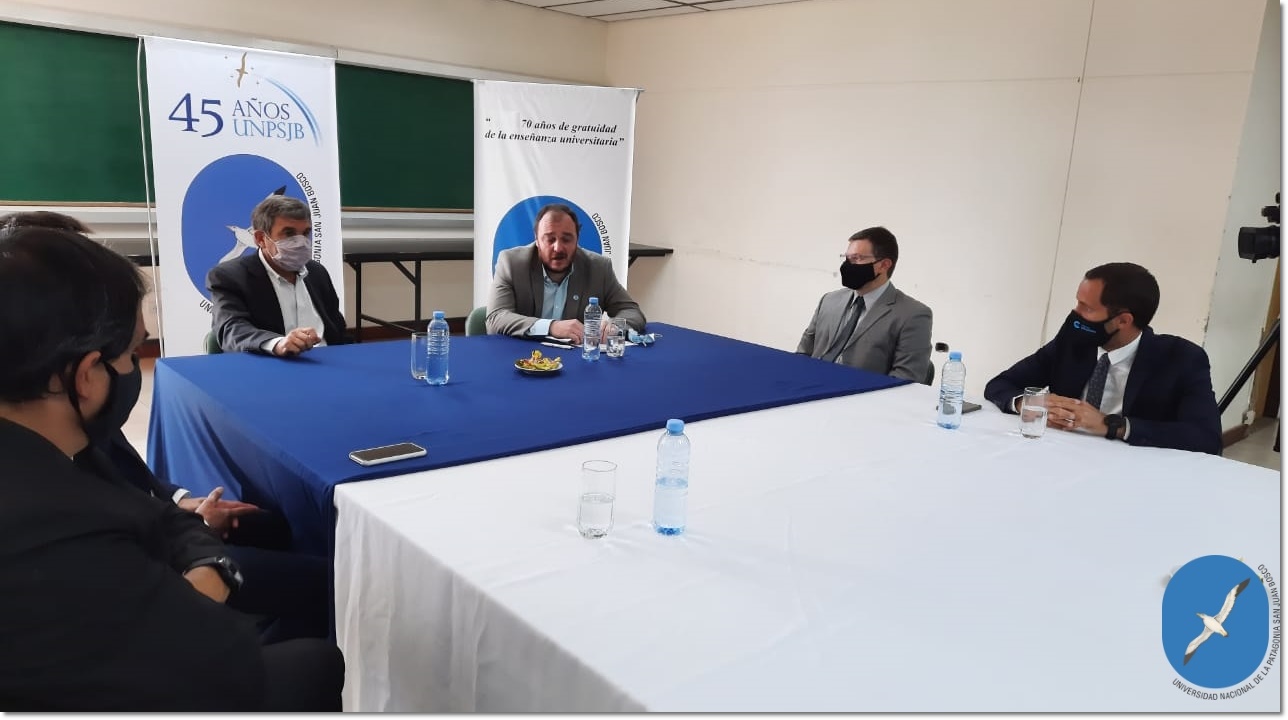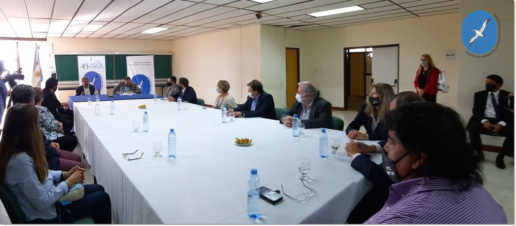 El ministro Roberto Salvarezza, participó de una importante reunión en la Sede del Rectorado de la UNPSJB. El encuentro se realizó momentos antes de anunciar el compromiso de 220 millones de pesos, con destino a la constitución de un Centro Interinstitucional en Temas Estratégicos, en el Parque Tecnológico que se promueve desde el Municipio de Comodoro Rivadavia, a través de la Agencia Comodoro Conocimiento, y del participará la UNPSJB.