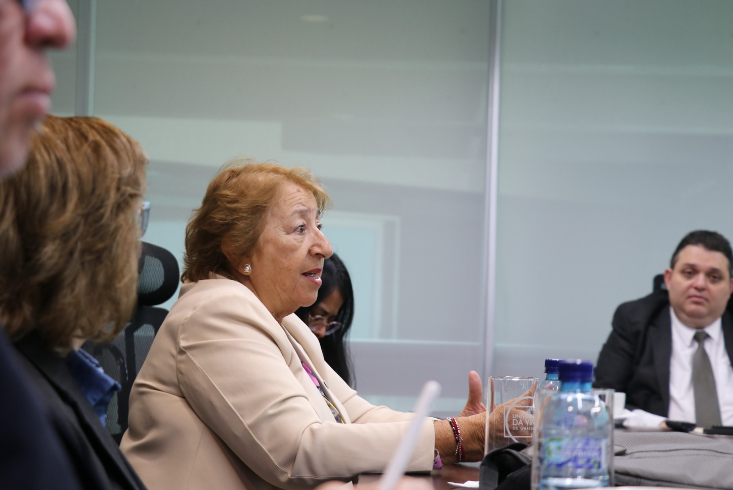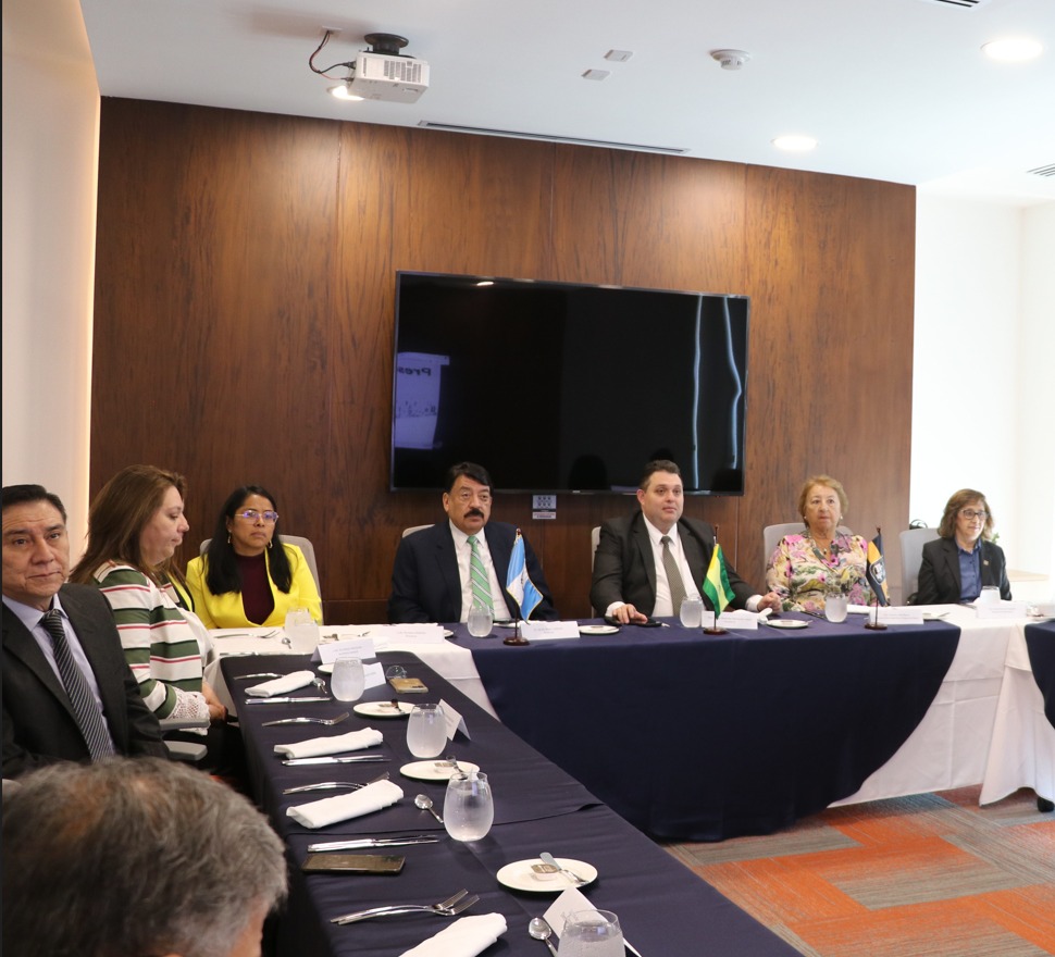 En el marco de la agenda de trabajo interinstitucional, la rectora de la UNPSJB se reunió con las autoridades de la Universidad de Da Vinci: Mgtr. César Alexander Hernández Juárez - Vicerrector general, Lcda. Ana María Valenzuela, Secretaria General, Mgtr. Rossana Ordóñez, Tesorera, Dr. José Adolfo Reyes Calderón, Prorrector, Lcda. Ana Beatriz Camacho Robles - Vocal, Mgtr. Juan Luis Fuentes Fumagalli, Vicerrector Académico, M. Sc. Jacobo Nitsch, Vicerrector de Proyección Institucional y Cooperación, Dr. Luis Ricardo Alvarez, Vicerrector de Investigación y Desarrollo y Dra. Rutilia Herrera, Decana de la facultad de Enfermería y Ciencias del Cuidado de la Salud.