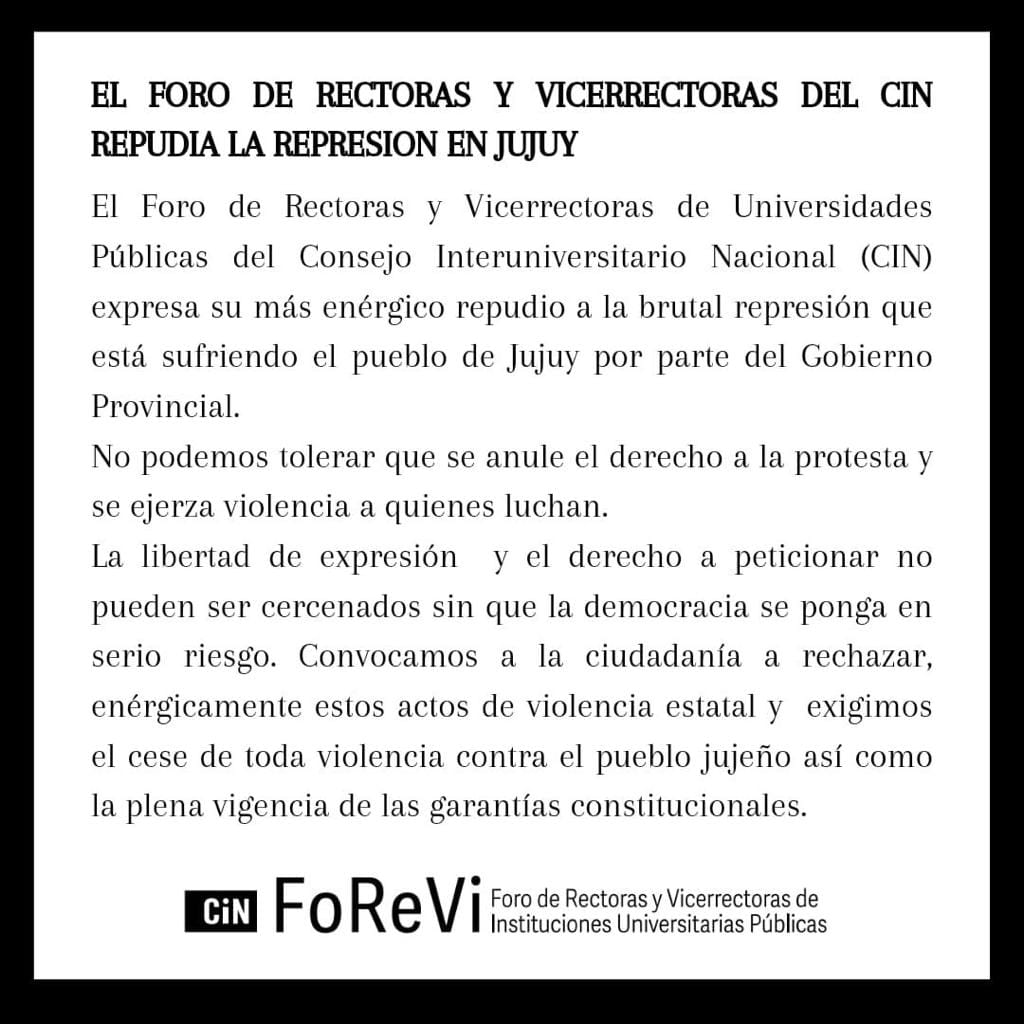 Aquí el comunicado por la situación en Jujuy