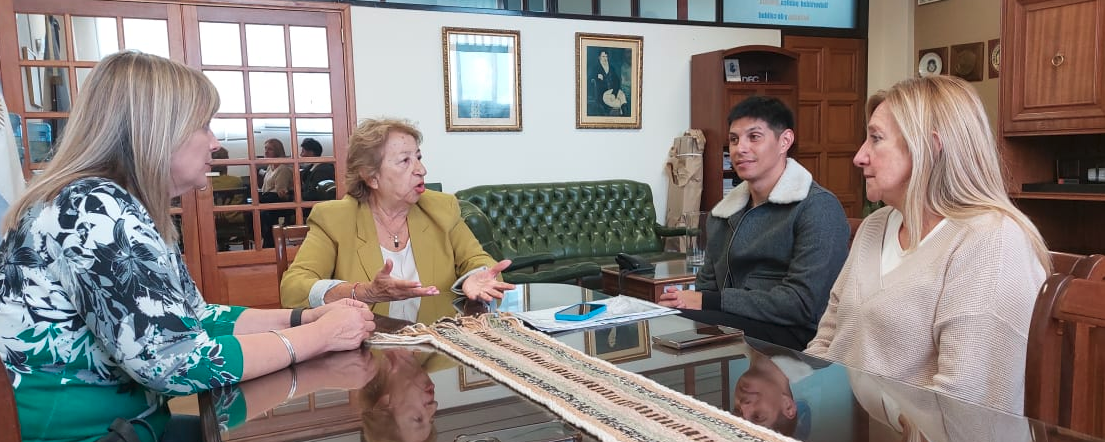 La rectora de la Universidad Nacional de la Patagonia San Juan Bosco, Lidia Blanco, recibió a la diputada provincial, Vanesa Abril, al presidente del Club Jorge Newbery, Pablo César Barrientos. En representación de la UNPSJB asistió además Cristina Massera, secretaria de Bienestar Universitario.