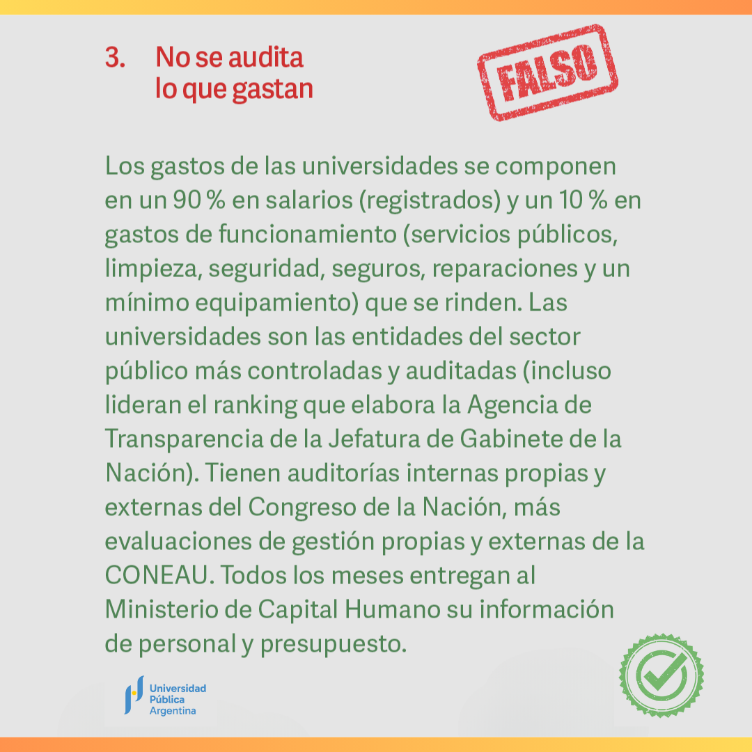 - Es falso que no se audite lo que las universidades gastan.