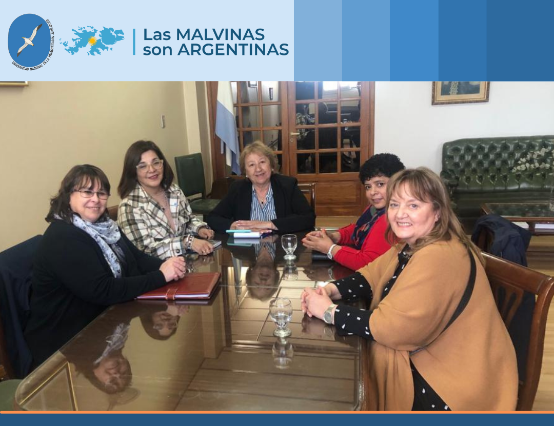 La rectora de la Universidad Nacional de la Patagonia San Juan Bosco, Lidia Blanco y la secretaria General, Liliana Barrionuevo se reunieron con la directora de Adultos Mayores de la Municipalidad de Comodoro Rivadavia, Lic. Viviana Traversa, con la profesional adjunta del equipo municipal de Adultos Mayores, Lic. Amelia Carrizo y la colaboradora Mónica Linares.