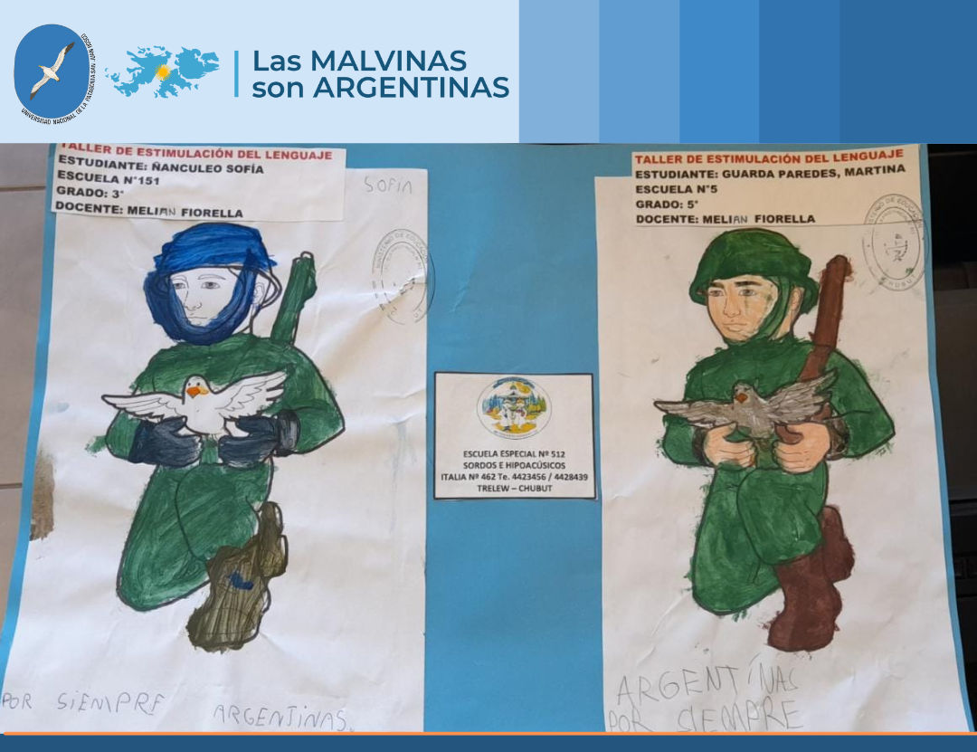 El lunes 25 de abril se inaugurará en el pasillo central del edificio de aulas de la sede Trelew de la UNPSJB la muestra de producciones artísticas inspiradas en la gesta de Malvinas