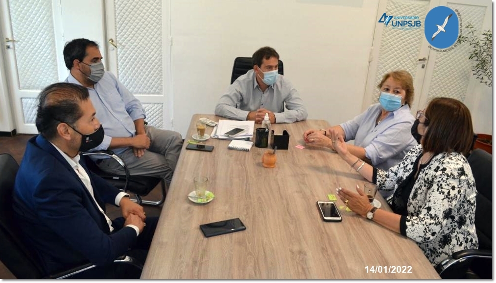 Este viernes 14 de enero, se reunieron en el edificio municipal, la Rectora de la Universidad Nacional de la Patagonia San Juan Bosco, MSc. Lidia Blanco, el Vicerrector, Esp. Walter Carrizo y la Secretaria General, Lic. Liliana Barrionuevo, junto al Intendente de la ciudad de Comodoro Rivadavia, Juan Pablo Luque y el Secretario de Gobierno, Modernización y Transparencia, Maximiliano Sampaoli.