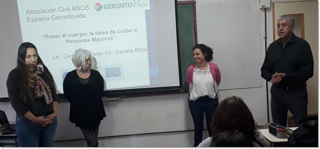 - La UNPSJB y la MCR, convocaron a la Lic. Carla Del Duca para capacitar a Cuidadores Domiciliarios de Adultos Mayores, estudiantes y comunidad en general.