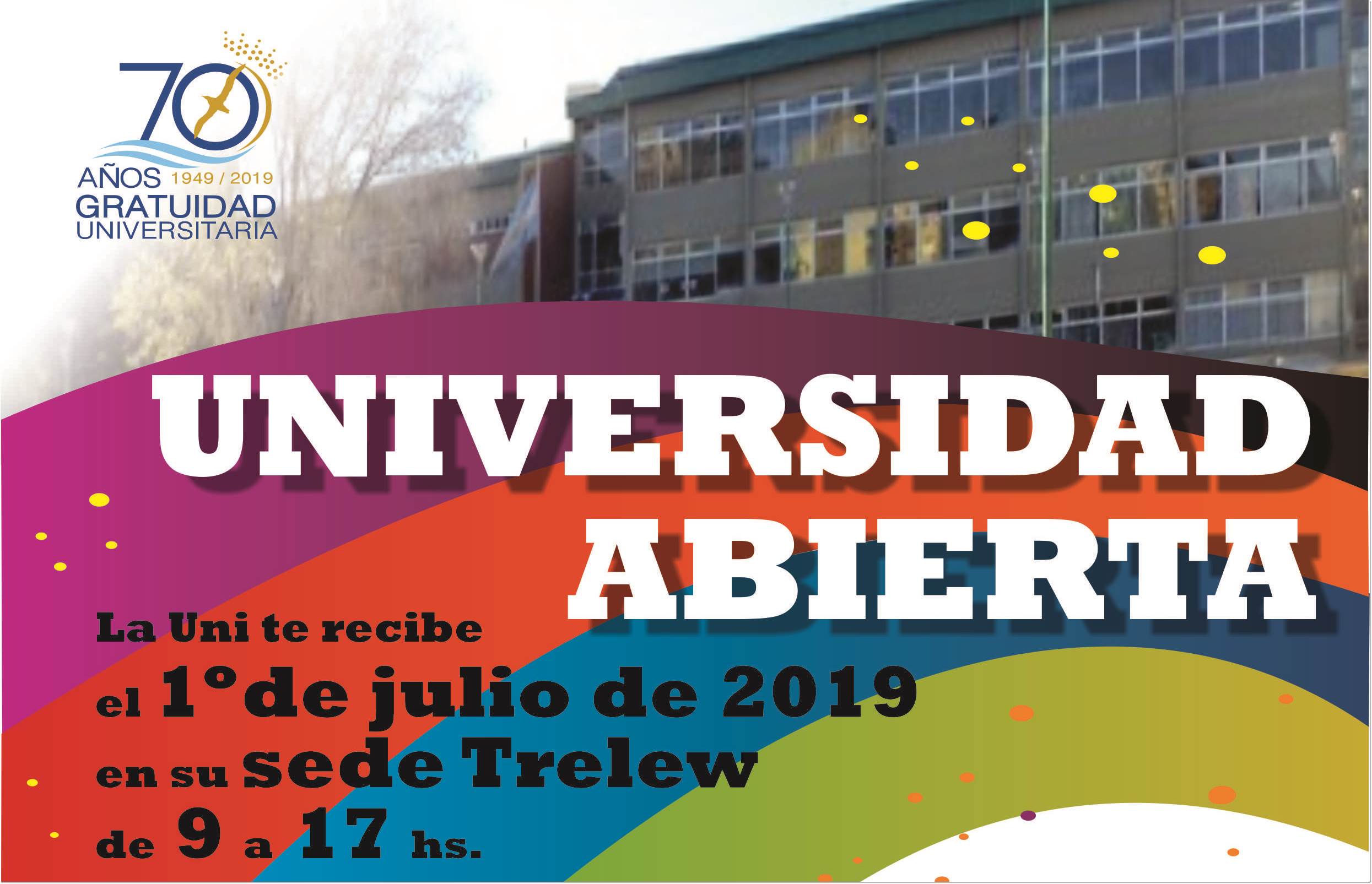 La Dirección Académica de la Universidad Nacional de la Patagonia San Juan Bosco, Sede Trelew, invita a los alumnos de los dos últimos años de nivel secundario y comunidad en general a participar de “Universidad Abierta” a realizarse el lunes 1 de julio de 9 a 17 hs en el edificio de aulas (9 de Julio y Belgrano).