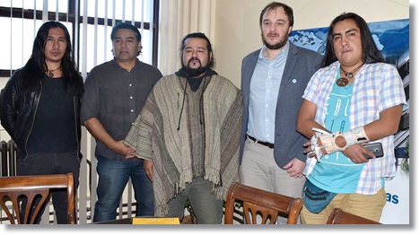 Horas antes de la presentación del Libro “Historia Secreta del Pueblo Mapuche”, su autor Pedro Cayuqueo, compartió algunas reflexiones con el Rector de nuestra casa de estudios, Carlos De Marziani, el Secretario de Extensión, Diego Lazzarone y la Coordinadora de la Cátedra Libre de Pueblos Originarios, Sonia Ivanoff y Daniel Loncón.