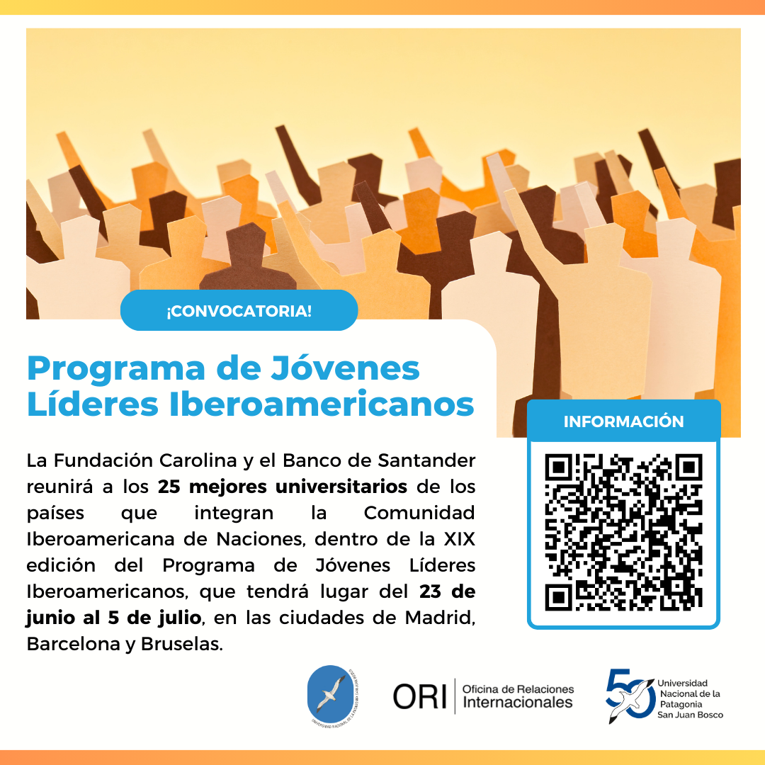 La Fundación Carolina junto con el Banco de Santander, reunirá a los 25 mejores universitarios de los países que integran la Comunidad Iberoamericana de Naciones, dentro de la XIX edición del Programa de Jóvenes Líderes Iberoamericanos, que tendrá lugar del 23 de junio al 5 de julio, en las ciudades de Madrid, Barcelona y Bruselas, por si fuera de interés para sus estudiantes, a quienes animamos a participar.