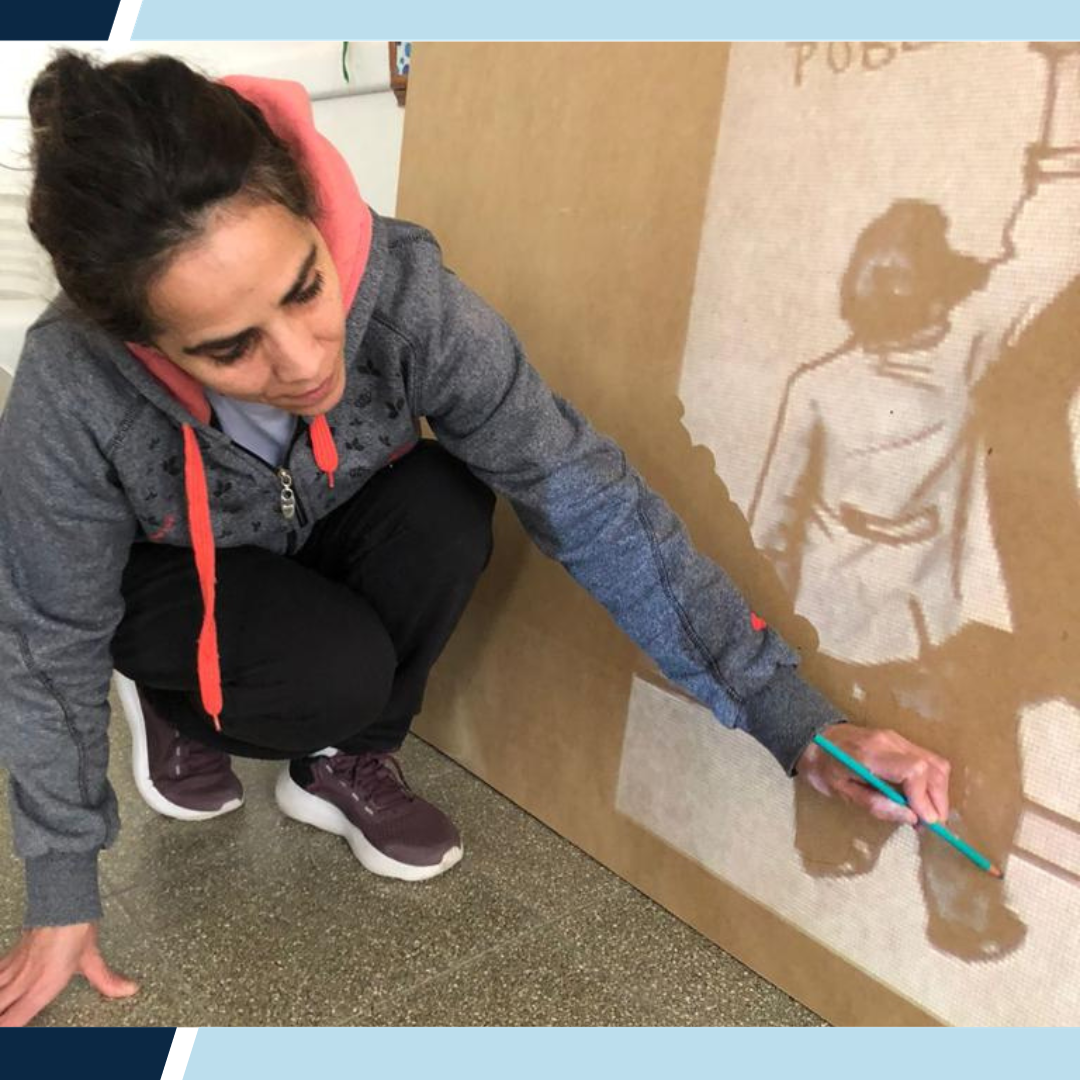 El Taller de Pintura Mural, coordinado por la artista plástica, profesora Carolina Barrientos, concluirá con el desarrollo de una obra conmemorativa por los 40° años de Democracia.