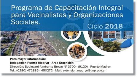 La Sede Puerto Madryn de la Universidad Nacional de la Patagonia San Juan Bosco, realizará Programa de Capacitación Integral para Vecinalistas y Organizaciones Sociales, este sábado 12 de mayo, en la Asociación Vecinal Piedra Buena.
