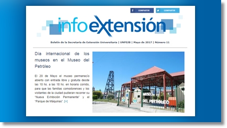 La Universidad Nacional de la Patagonia San Juan Bosco, a través de la Secretaría de Extensión Universitaria, publicó una nueva edición del Boletín Informativo denominado “InfoExtensión”, correspondiente al mes de Junio-Julio de 2017. El boletín cuenta con una versión para ser visualizada en la web y otra para ser difundida por correo electrónico.